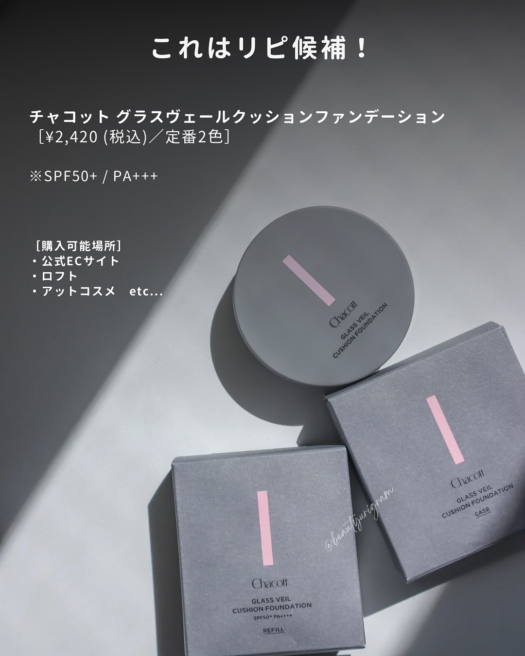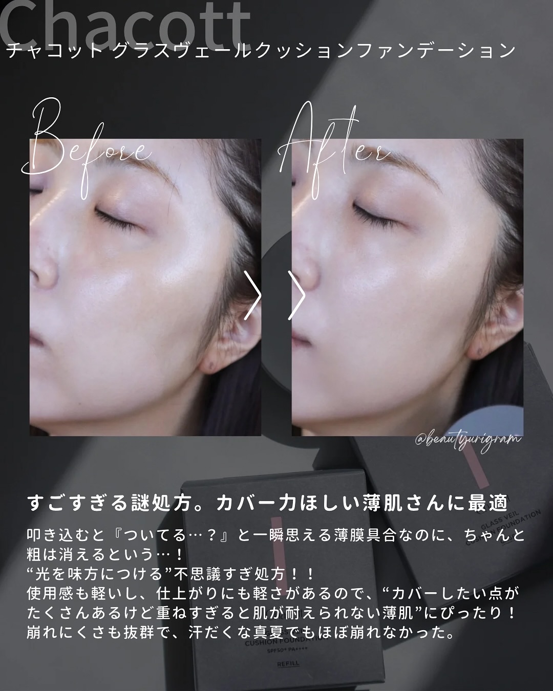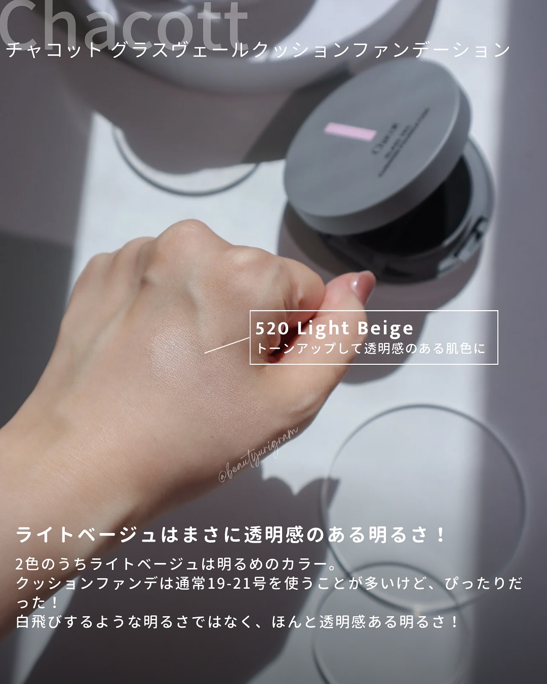 チャコットさまからいただきました🎁🌿🌿🌿☑︎チャコットグラスヴェールクッションファンデーション520ライトベージュSPF50+/PA++++(ノンケミカル処方・紫外線吸収剤フリー)୨୧୨୧プロ発想の「光メイク」技術で素肌感と高いカバー力を両立...