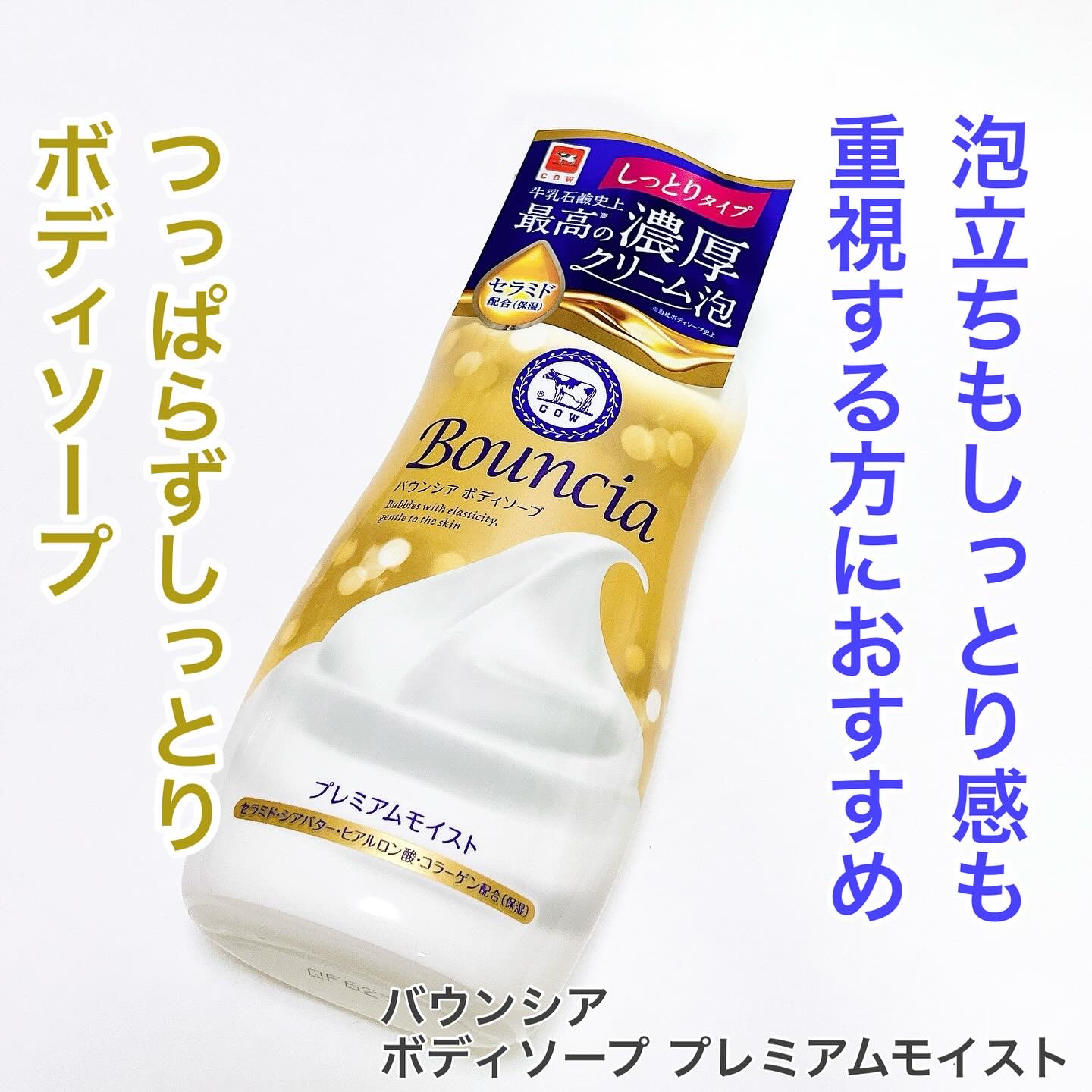 牛乳石鹸さまからいただきました🎁☑︎バウンシアボディソーププレミアムモイスト保湿成分たっぷりなプレミアムモイスト処方✨とにかくふわふわ濃密な泡で摩擦レスに洗える🥰簡単に泡立つし泡切れも良くてさっと洗い流せる🙌洗い上がりもしっとり💓濃厚でクリー...