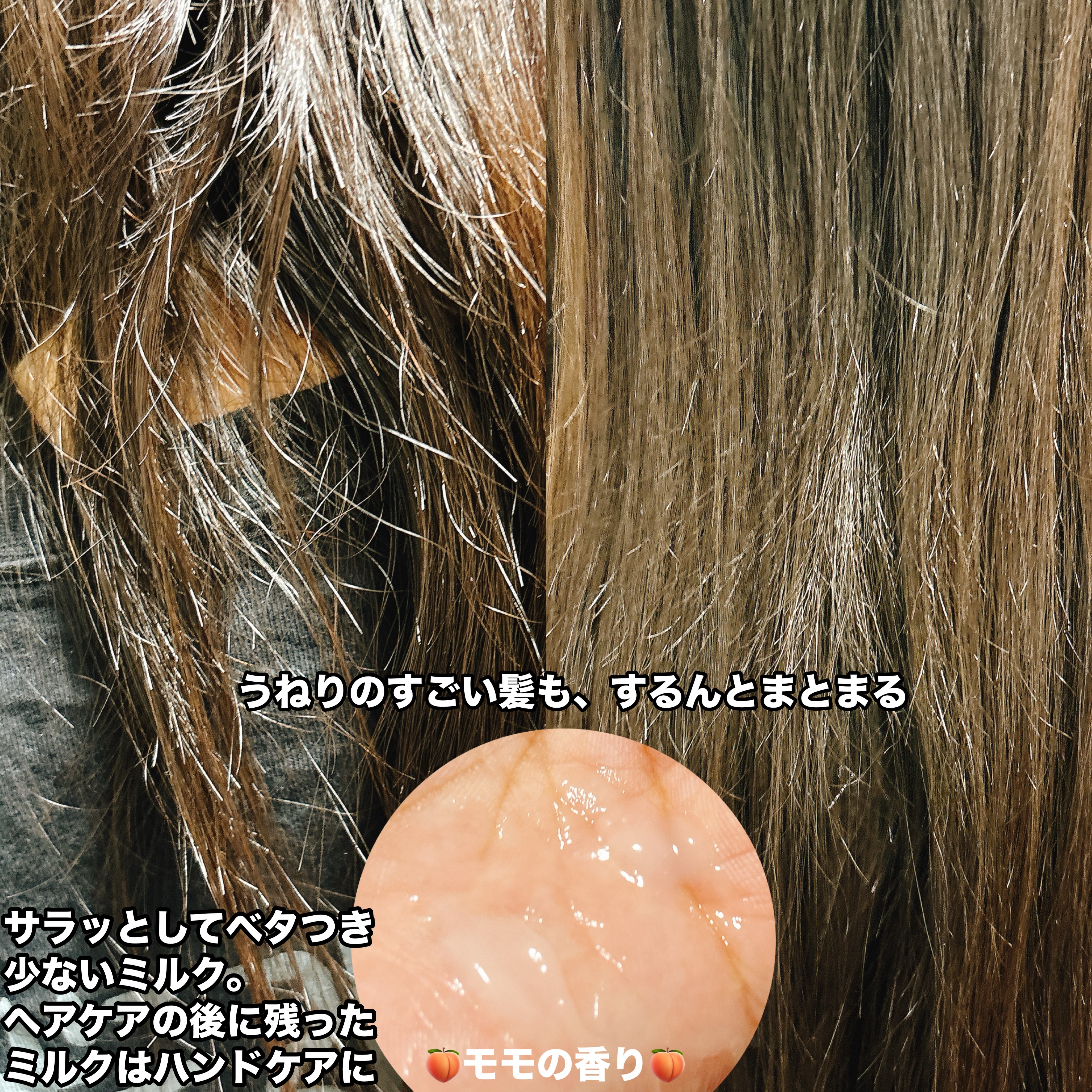 モモリさまからいただきました!ありがとうございます😊モモリさらりとまとまるヘアミルク¥770(kirin調べ)桃の香りがするヘアミルク✨香りだけでなく桃由来成分も配合されているそうです😚ヘアミルク自体は柔らかいテクスチャーでヘアミルクの中では...
