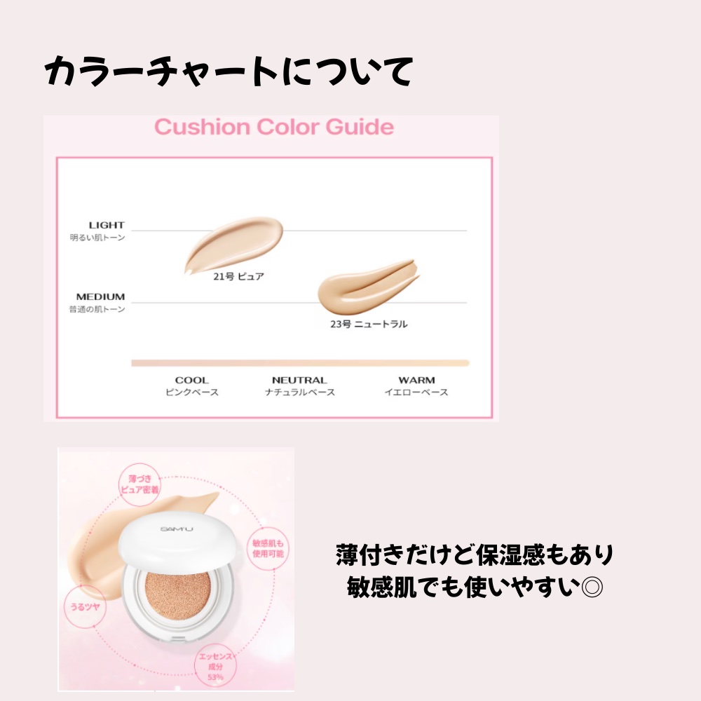 .💠💠💠💠💠💠💠💠💠💠SAM’Uサミュピュアアンドピュアクッション💠💠💠💠💠💠💠💠💠💠1度のタッチで本来の素肌のようなツヤ肌を叶えてくれるクッションファンデ😍カラーは21号と23号の2色展開。パフは細かなところも塗りやすいしずく型。薄くピタッ...