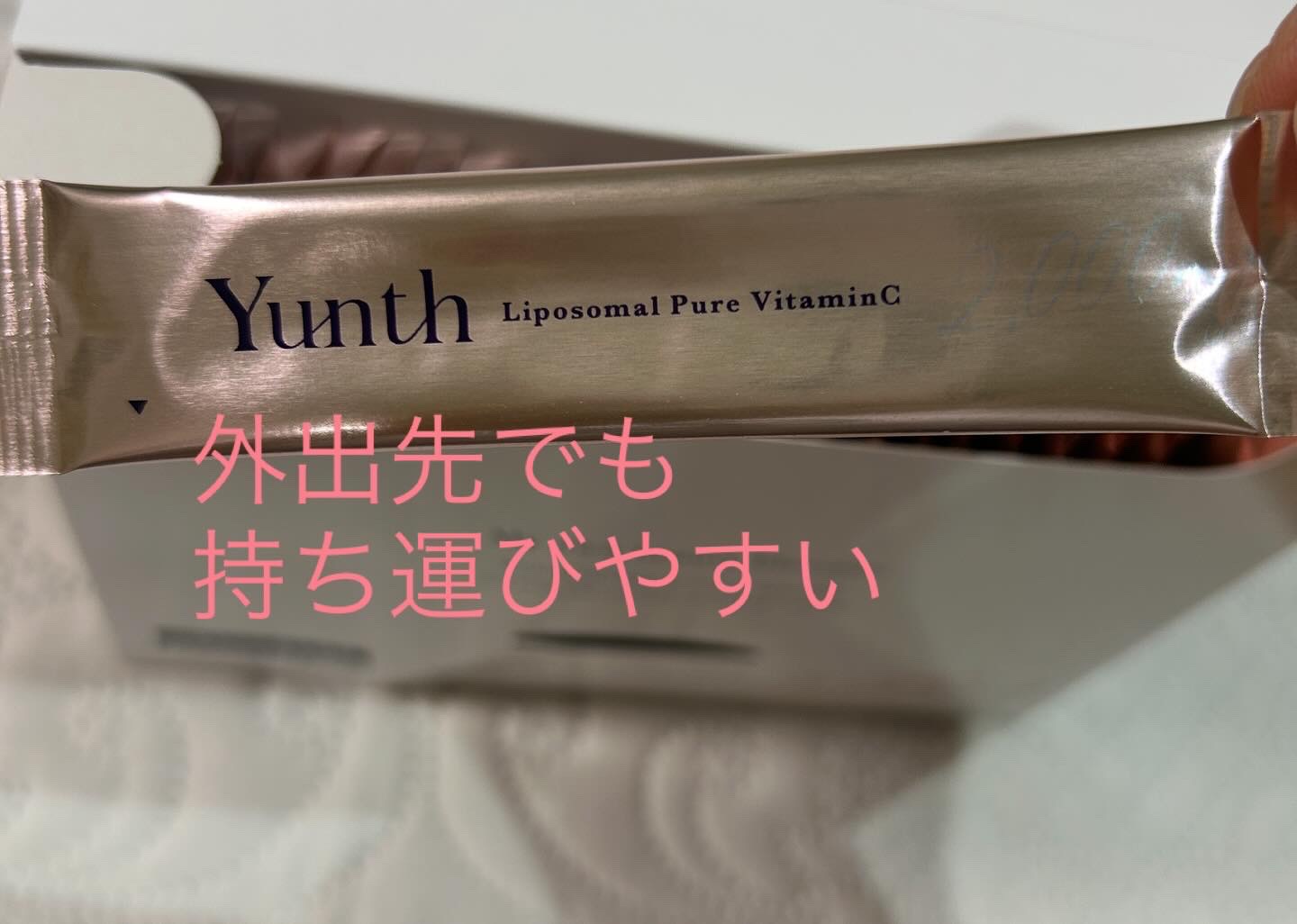 - ①レモン約100個分相当の高濃度ビタミンC、1本に2,000mg配合 ビタミンCは、体内でつくることができないため、毎日の補給が欠かせない栄養素です。インナーケアだけでなく、エイジングケア*1、そして日差しが気になる季節にも欠かせません。「Yunth リポソーム生ビタミンC」は、1本あたり2,000mg*2(レモン約100個分相当*2)の高濃度ビタミンCを贅沢に配合し、毎日の美しさと健やかさを力強くサポートします。 *1 年齢に応じたケア *2 リポソームビタミンC1,000mgとして ②高吸収型「リポソーム生ビタミンC」×即攻型「生ビタミンC」を配合 ビタミンCは大量に摂取しても体外に排出されやすいという特性があります。 Yunthではゆっくり届く[高吸収型]リポソーム生ビタミンCと、素早く広がる[即攻*型]の生ビタミンCを1000㎎ずつ配合し、常に必要な量を体内に巡らせられる設計に。 * 溶ける速さのこと ③レチノール&ホワイトトマトで美容の贅沢ケア 生ビタミンCに加え、レチノール(ビタミンA)や、無色カロテノイドが豊富に含まれているホワイトトマトエキスを厳選配合。 ビタミンCと一緒に摂りたいレチノールと同時に摂取することで相性がよいと言われており、ホワイトトマトは、日差しの強い季節に取り入れたい成分として注目されています。 内側から美容ケアをサポートし、エイジングケア*にもアプローチします。 * 年齢に応じたケア ④人工甘味料など無添加でも、飲みやすく・続けやすい 毎日口にするものだから、余計なものは入れていません。 人工甘味料、合成香料、合成着色料は一切不使用。 レモンのビタミンCをそのままに、クセになるすっぱさです。 さっと溶けて飲みやすく毎日続けられるよう、超微細なパウダータイプです。 ※公式サイト、ECモール(Amazon、楽天など)で発売中