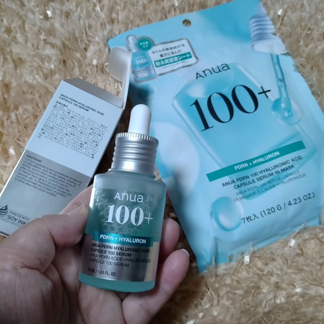 @cosmesさんを通してAnuaさんより「PDRNヒアルロン酸カプセル100セラムマスクパックとPDRNヒアルロン酸カプセル100セラム」をいただきました。ありがとうございます♪洗顔直後の肌に美容液を塗ってマスクをつける☆AnuaPDRNヒ...