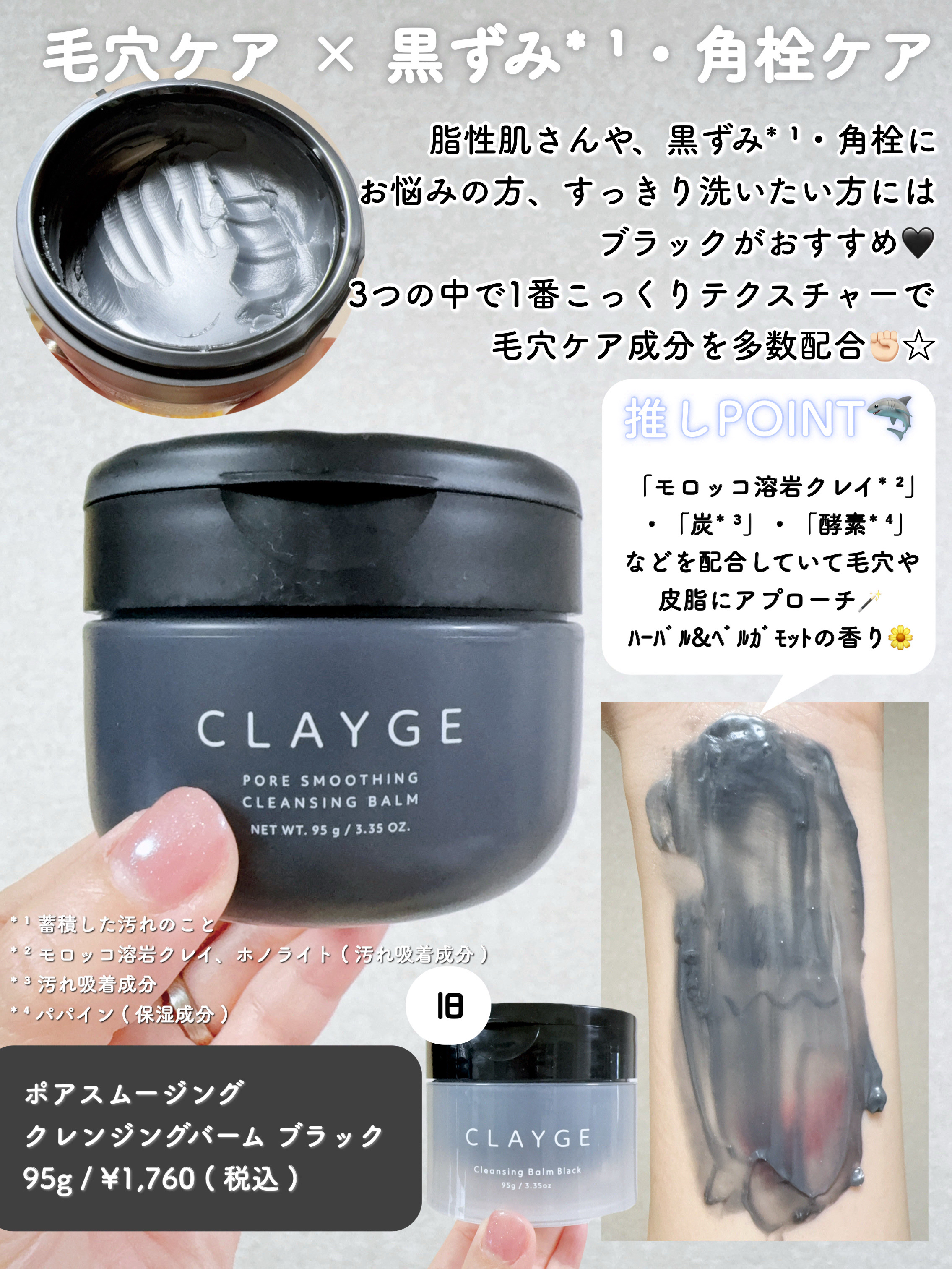 CLAYGE クレージュ ポアスムージング クレンジングバーム ブラック | 1,760円 |