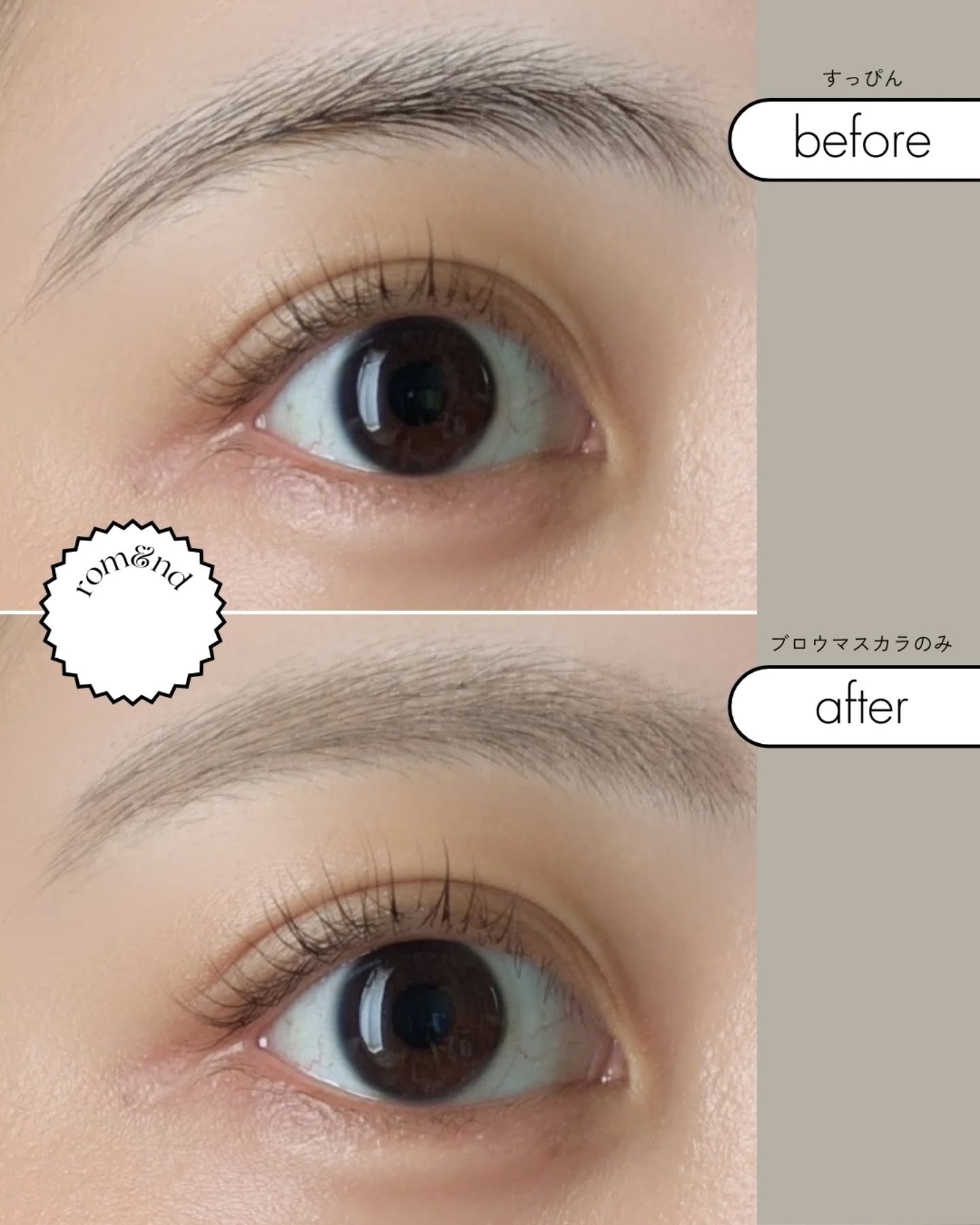 3秒でやわらか印象眉に✨rom&ndの大人気眉マスカラの新色11モカグレー☕️ロムアンド様からハンオールブロウカラの新色11モカグレーをいただきました💕モカグレーはブラウンにアッシュを混ぜた落ち着いたカラー☕️暗めの髪色にも明るめの髪色にも合...