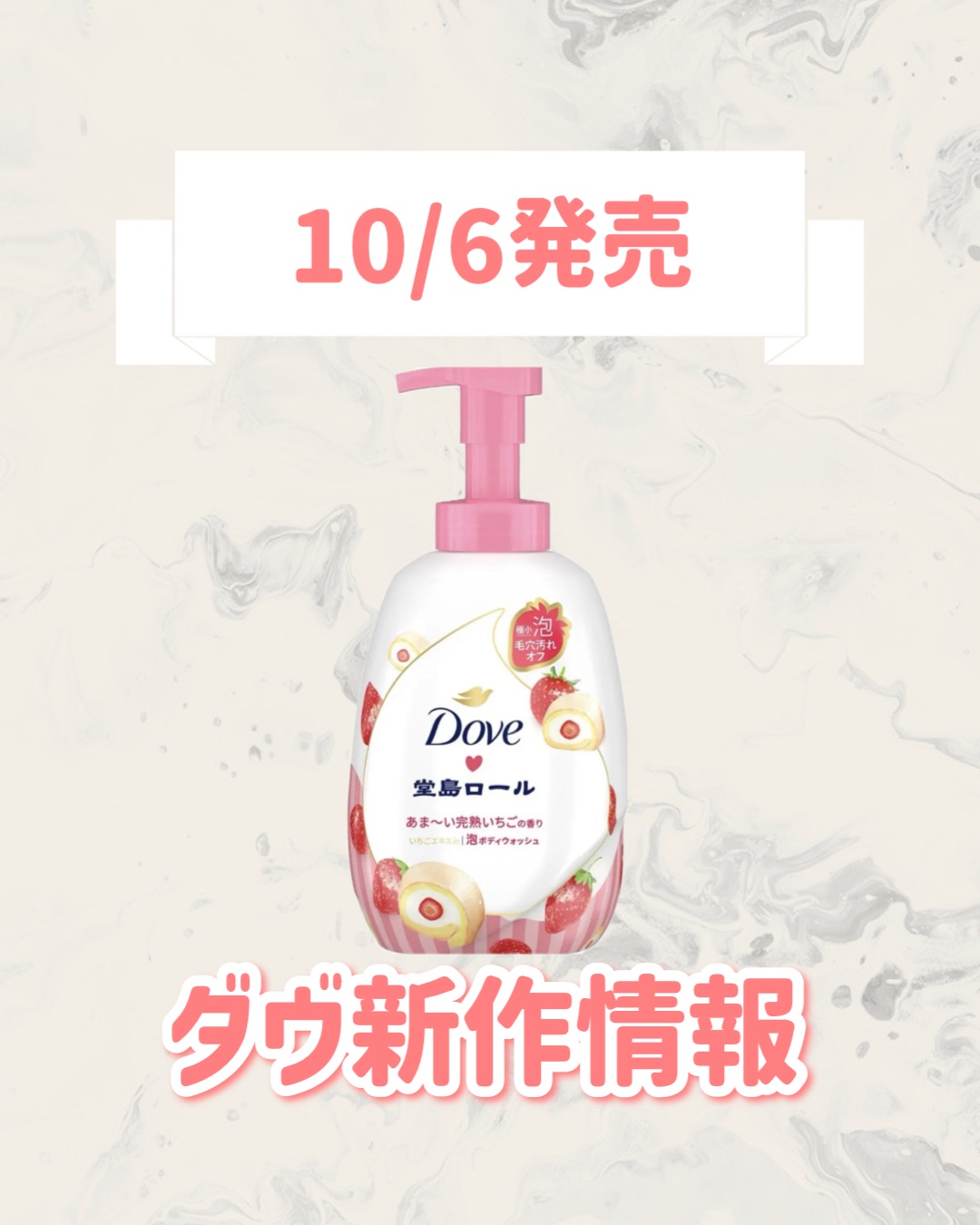 10/6販売開始!堂島ロールとコラボ!✼••┈┈••✼••┈┈••✼••┈┈••✼••┈┈••✼ダヴダヴビューティーモイスチャー泡ボディウォッシュ季節の堂島ロールあま~い完熟いちごダヴボディウォッシュ季節の堂島ロール甘酸っぱい摘みたていちごポ...