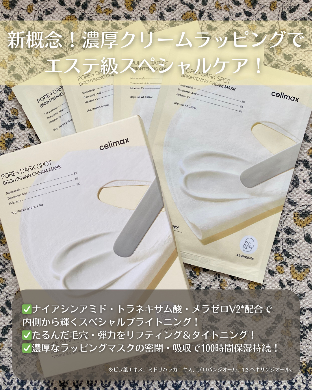#PRCelimax様から頂きました。ポアブライトニングクリームラッピングマスク︎︎︎︎︎︎☑︎ナイアシンアミド︎︎︎︎︎︎☑︎トラネキサム酸︎︎︎︎︎︎☑︎メテゼロV2︎︎︎︎︎︎20分で肌調子上げよう🫶ブライトニング、シワ、リフティング、...
