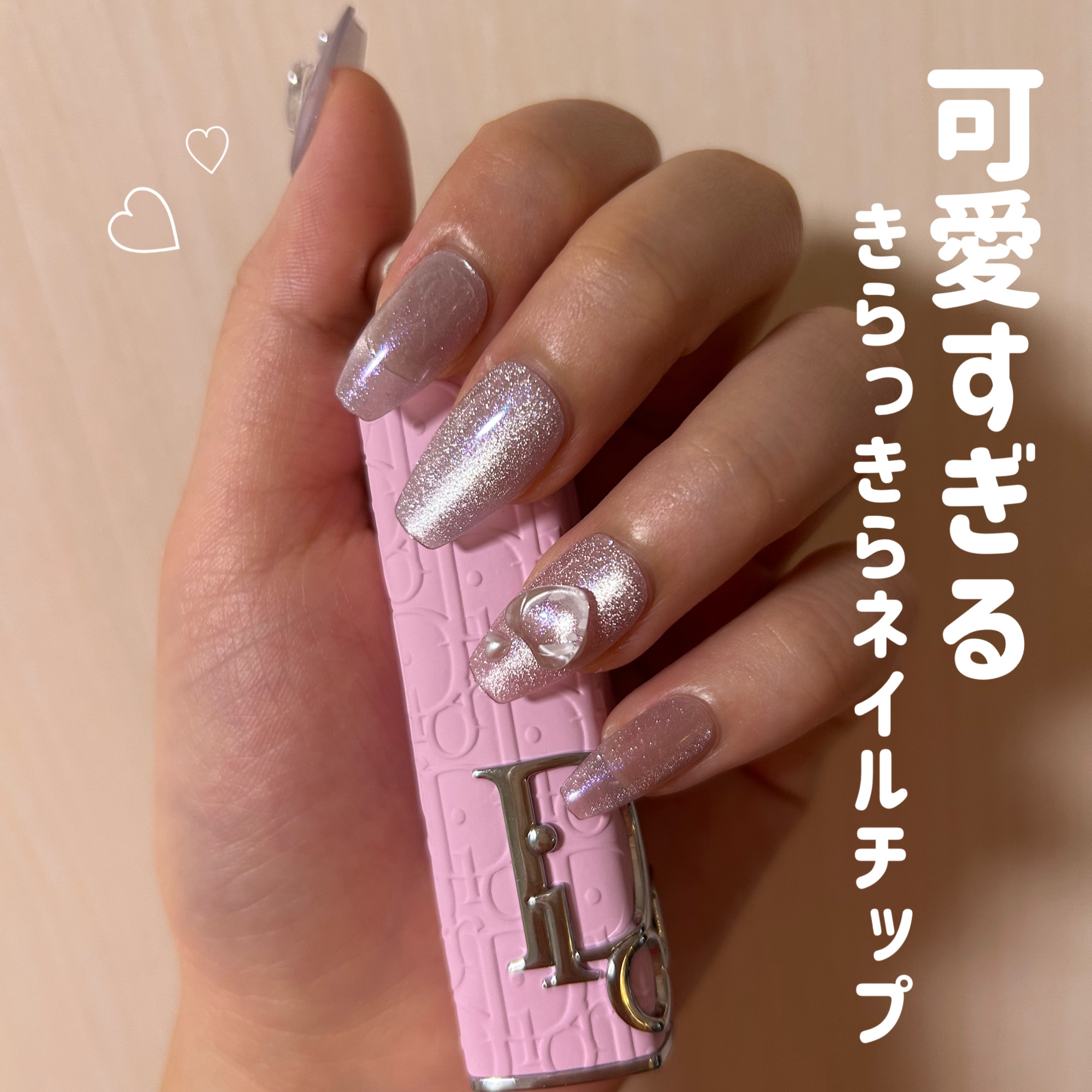 可愛すぎる、、♡ 普段ネイルができない仕事をしている方、学生さんなどにおすすめできるネイルチップ。 チップが24枚入っているので、自分に合った爪の大きさのものを選べます◎ ラメ感がほんっっとに可愛くて気分が上がります☺︎