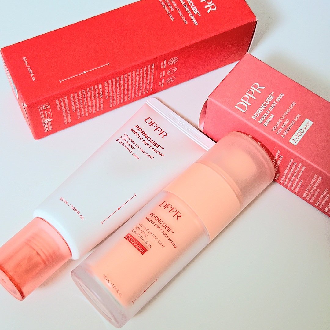 DPPRPDRNキューブミドルショット2000セラム&DPPRPDRNCUBEミドルショットクリーム🩷PDRNキューブ中顔面圧縮セラム微細な針がはいっていてたるんだフェイスラインを引き上げ固定✨中顔面圧縮セラムで人気だよね✨ピンク色でトロっと...