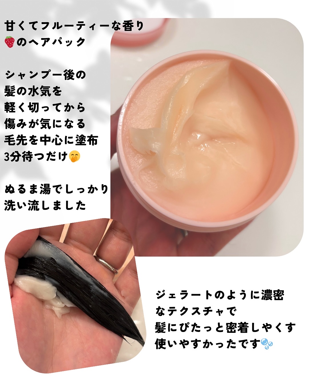 | ヘアトリートメントランキング第58位 | 濃密なジェラートテクスチャーで髪にしっかり密着する❣️ 甘いベリーのデザートみたいな香りがすごくいい香りで香り持ちも結構良かった! | 詳細を見る | ||