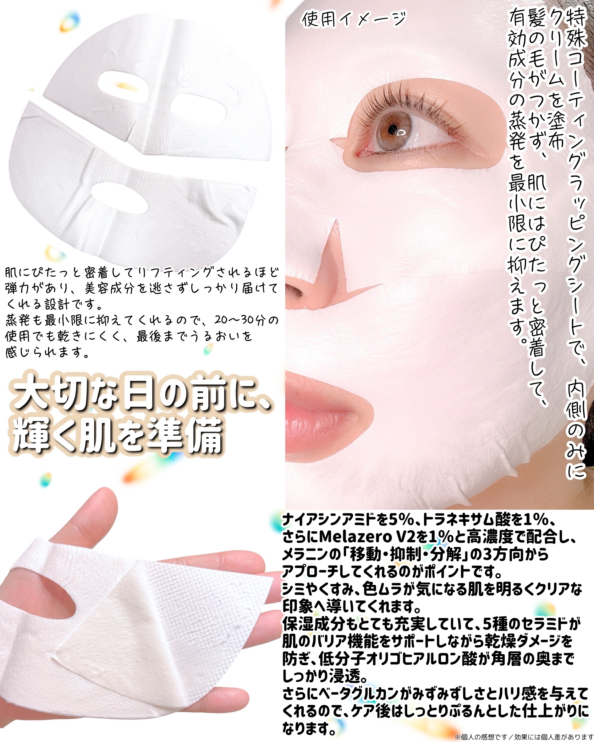 | クリームが満遍なくシートに付いていて、ぴったりと密着し全顔覆い尽くしてしっかりケアできる🤲🏻 | 詳細を見る | |||