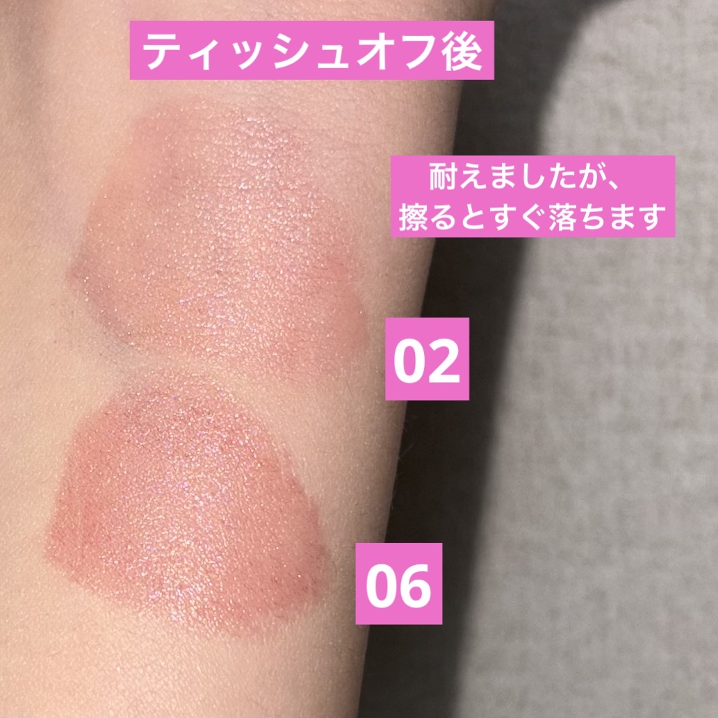 プレゼントに当選したんです!!嬉しすぎる😭 指に触れた感触はザクザク系のラメアイシャドウと近い感触でした。 私の肌(肌黄色めブルベ冬)は色味は重ねていくごとにオレンジ→レンガ色っぽく発色していきました。 マット好き×金欠+安定思考の自分では買わない色なので挑戦することができて嬉しかったです!!