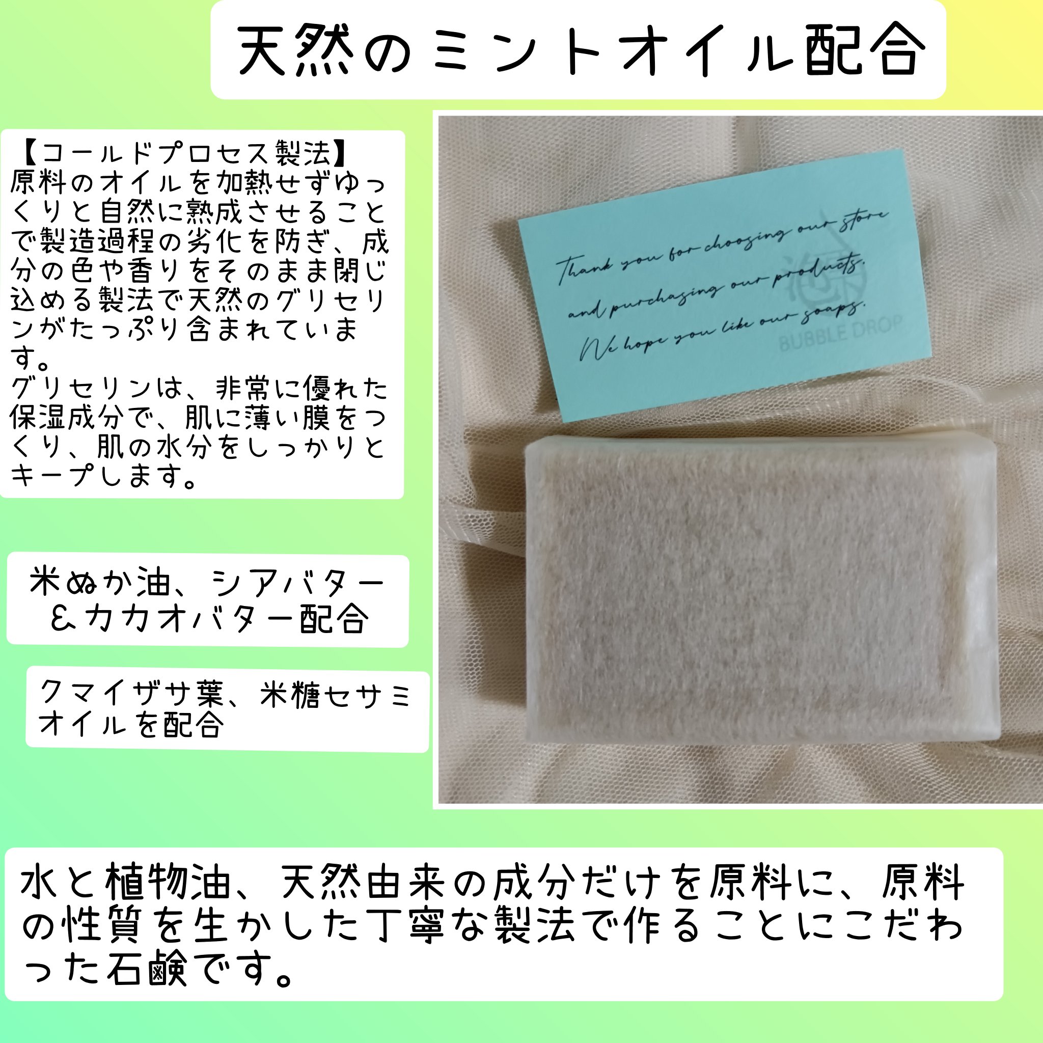 コエタスのモニターキャンペーンでもらったミント×クマイザサ葉[悠久の生石鹸ミント涼100g]についてのレビューです。コメヌカ油をベースにインドの伝統医療アーユルヴェーダでも使われているセサミオイルを調合してつくられているとのことです。作り方も...