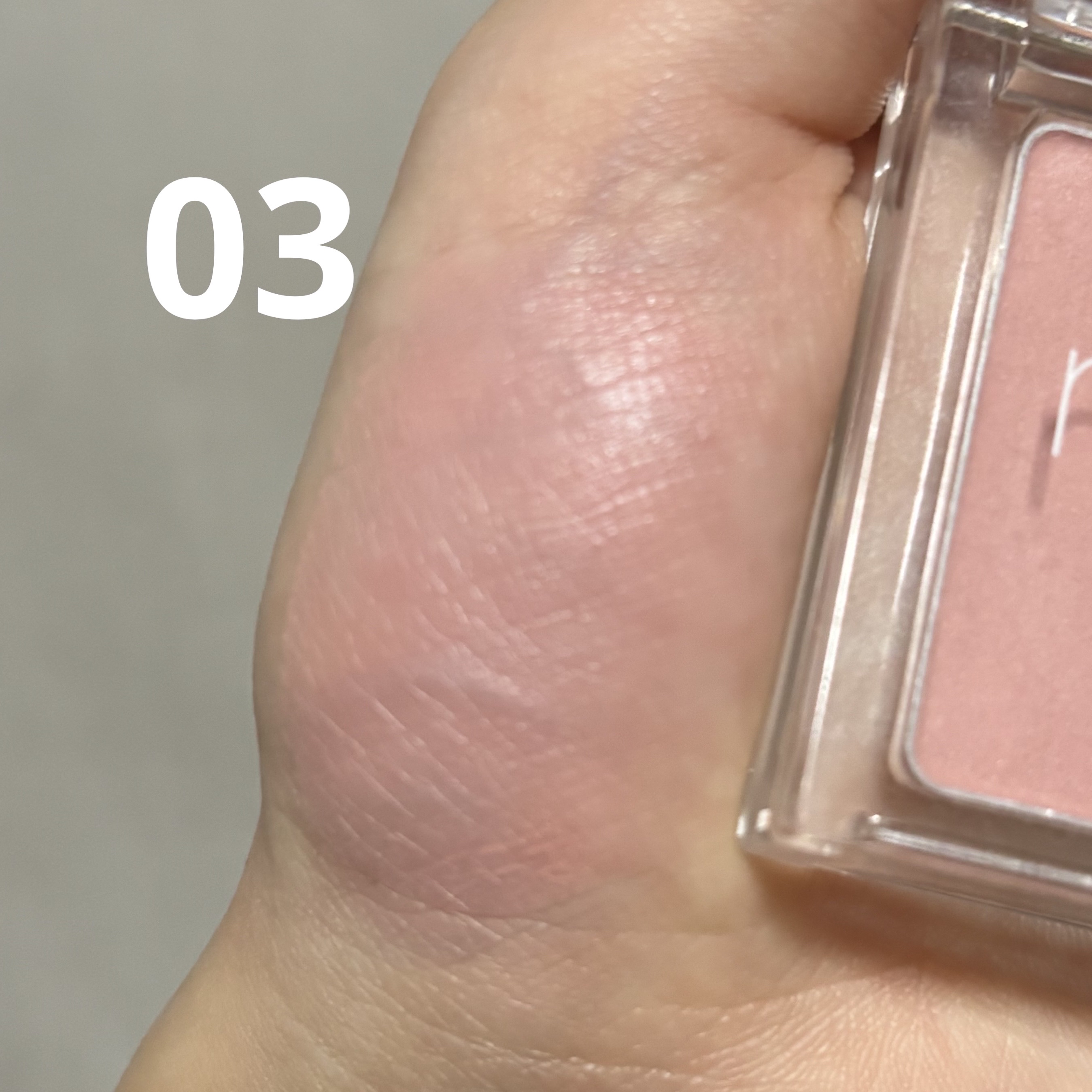 muiceぽわんチーク01.02.03.04¥99001デートローズローズって名前着いてるけどコーラル系な感じかなって思う暗すぎず明るすぎずちょうどいい02ピュアビスケット結構落ち着いた色味でパキッとしてないからイエベさんにすごい合ってると思...