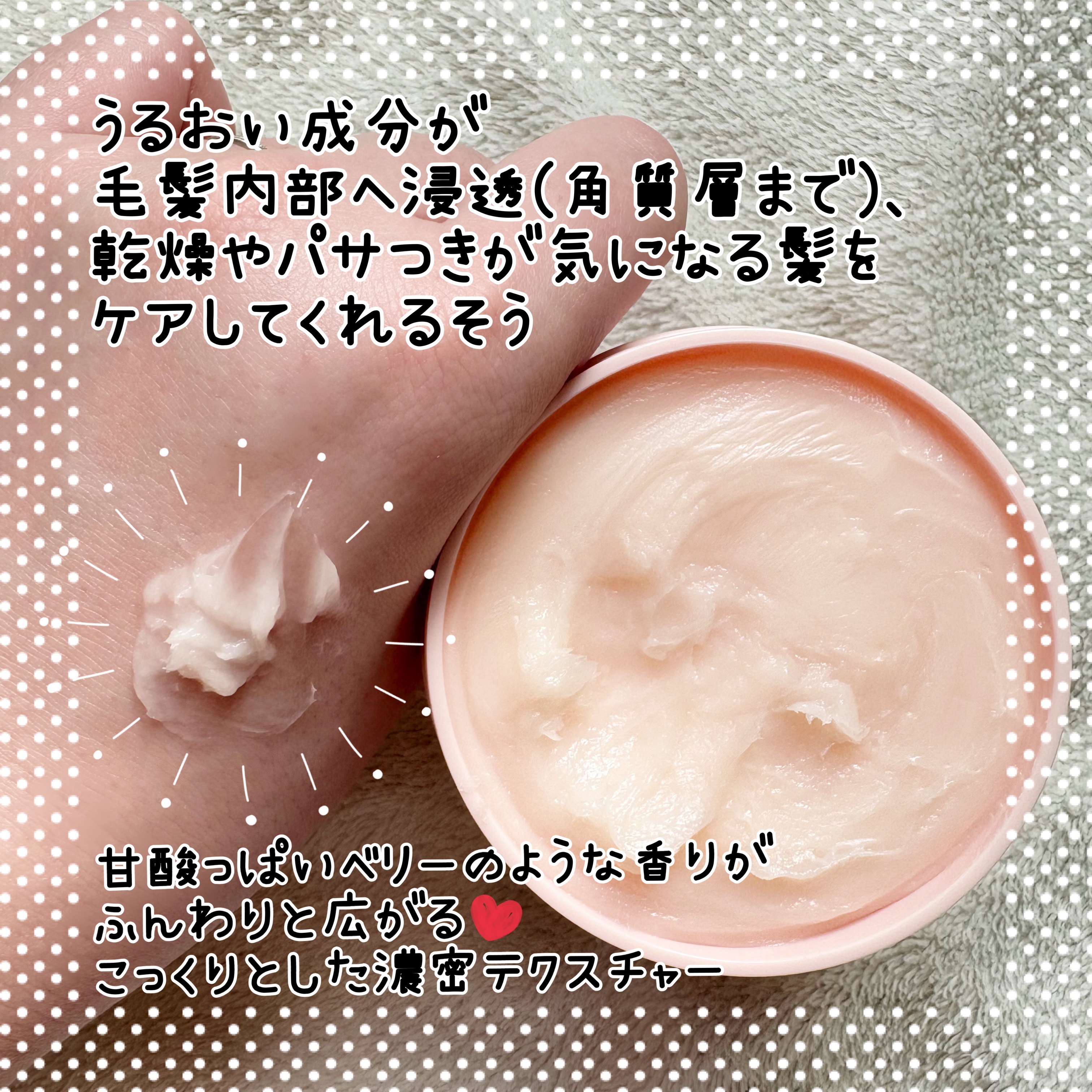 | ヘアトリートメントランキング第58位 | 濃密なジェラートテクスチャーで髪にしっかり密着する❣️ 甘いベリーのデザートみたいな香りがすごくいい香りで香り持ちも結構良かった! | 詳細を見る | ||