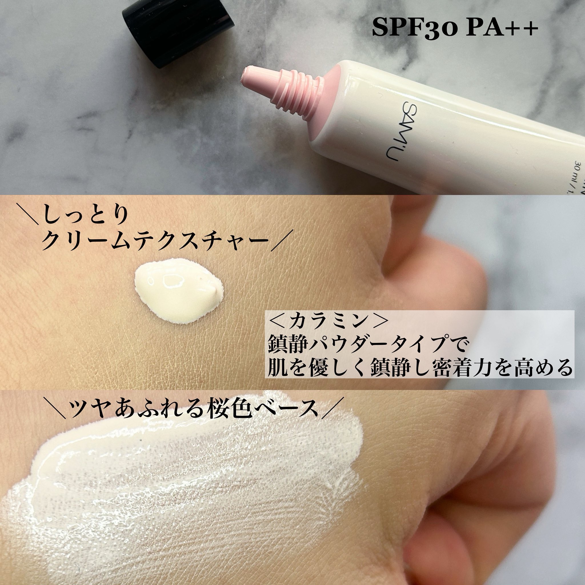 SAM'Uセンシティブピュア&ピュアスキンティントSPF30・PA++スキンケア成分が80%配合のサミュの化粧下地が誕生.ᐟ.ᐟカラミン¦ヤマザクラ花エキス¦ニンファエアアルバ花エキス¦ハイブリットロース花エキス¦ハス花エキスなど配合🌸パッと...