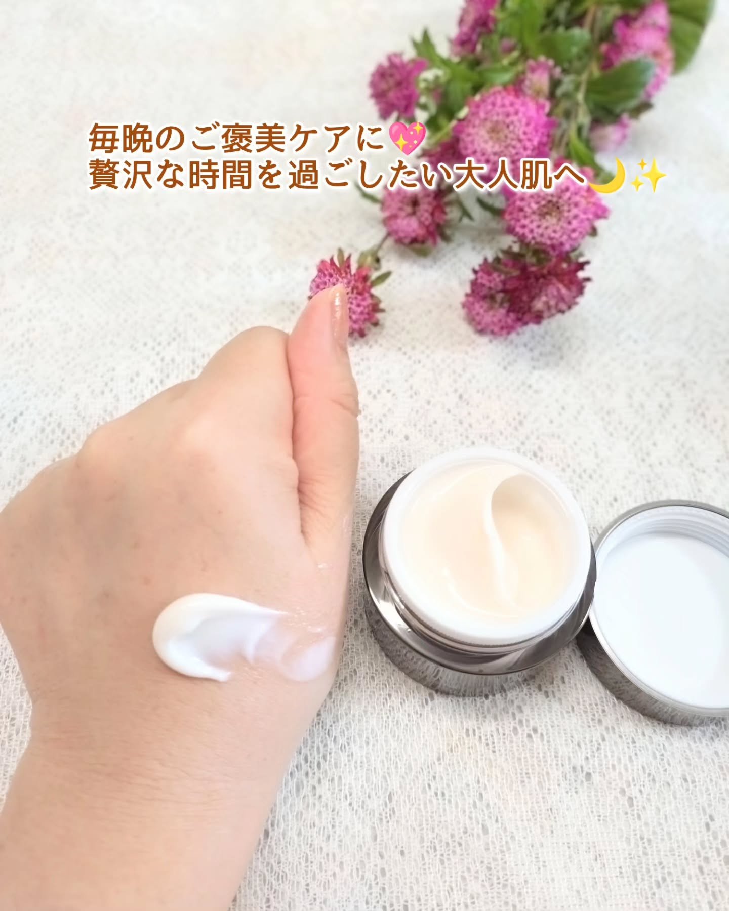 b.glenスーパーQuSomeクリーム美容クリニックでも使われている効果の高い成分、“塗るボトックス”と呼ばれるボツリヌス由来ペプチド、サーモン由来PDRNを贅沢に配合。優雅な夜のスキンケアタイムになっています。翌朝の肌触りが変わるそう!秋...