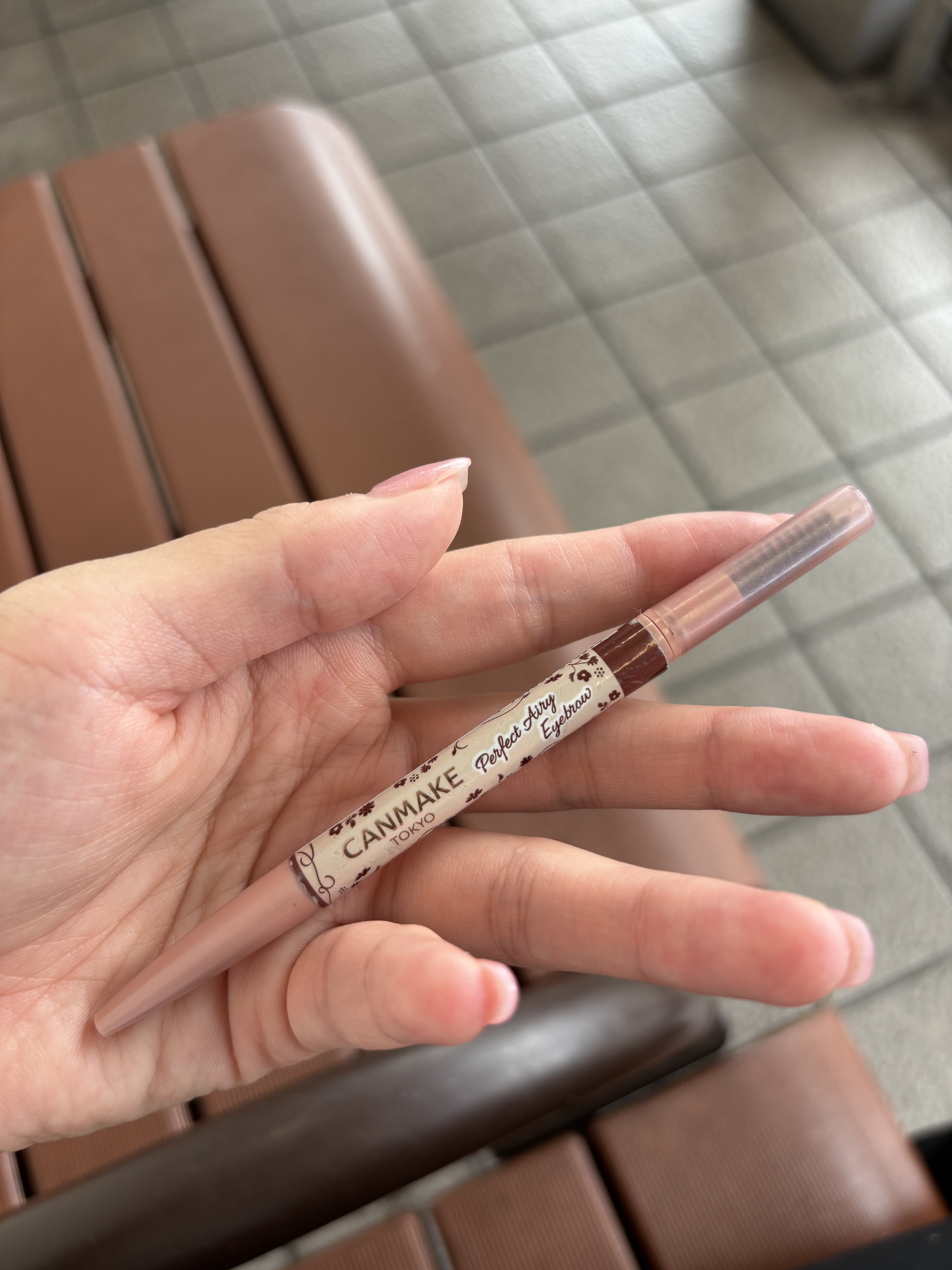 キャンメイクパーフェクトエアリーアイブロウ02 ナチュラルブラウン色は少し明るめ形が楕円形しているウォータープルーフ繰り出し式で出しても戻せる描きやすさも、まあまあ良き♪長さも12cmとポーチにも入るコンパクトで良き♪なんと言っても価格が49...