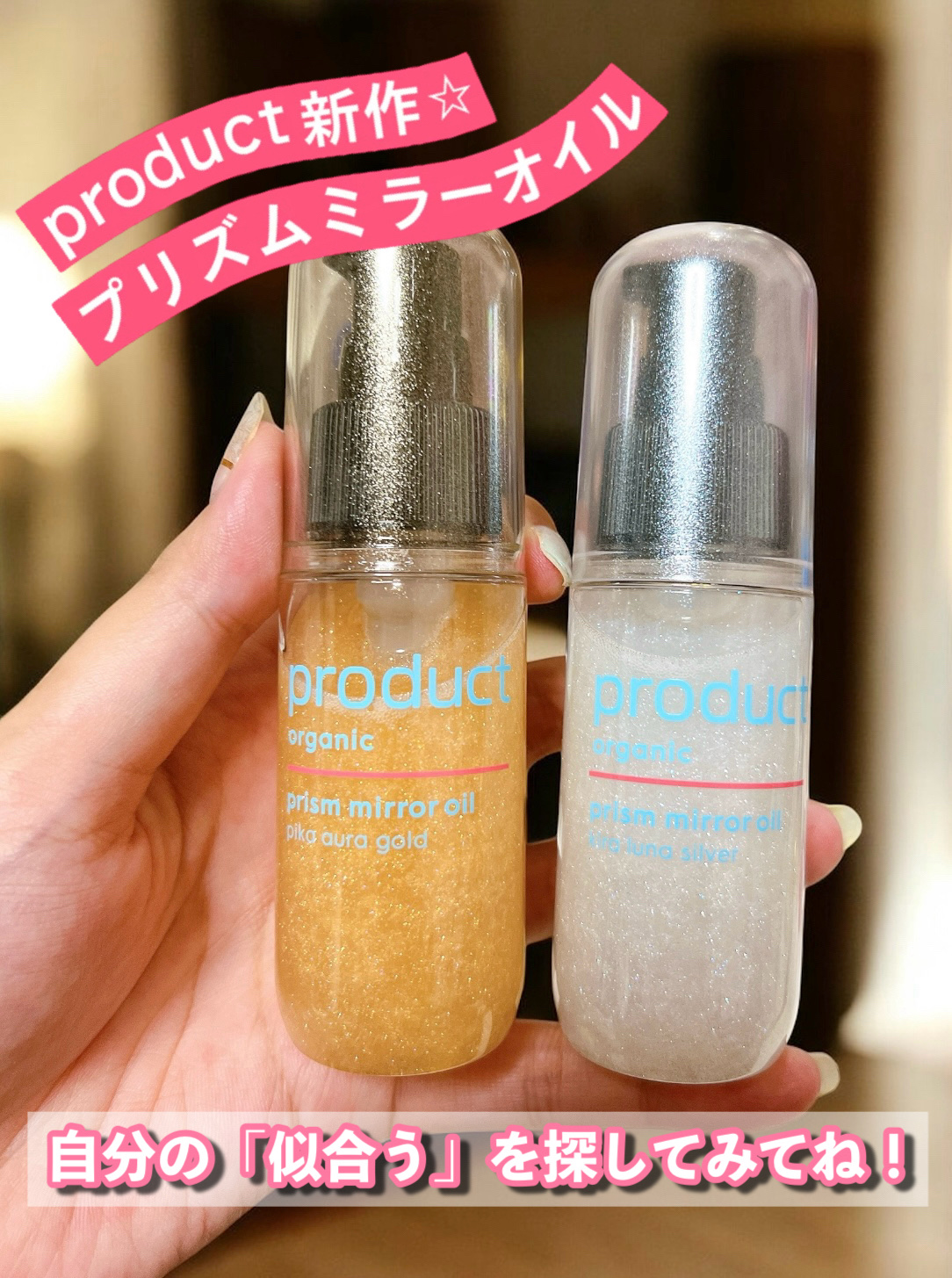 🌿ザ・プロダクト プリズムミラーオイルパーソナルカラー別に選べるマルチオイル✨植物(ユーカリ)由来のサスティナブルラメと微粒子パールが、髪と肌に輝きを与えてくれます。ピカオーラゴールドとキラルナシルバーの肌のトーンに合わせて選べる2色。ピカオ...