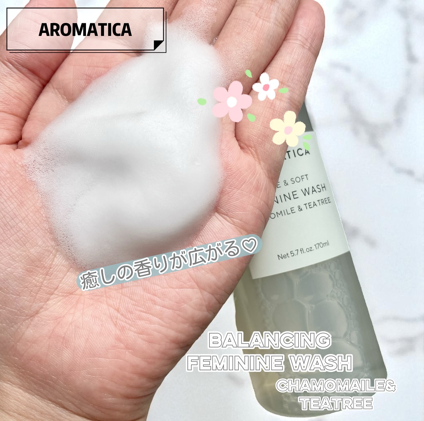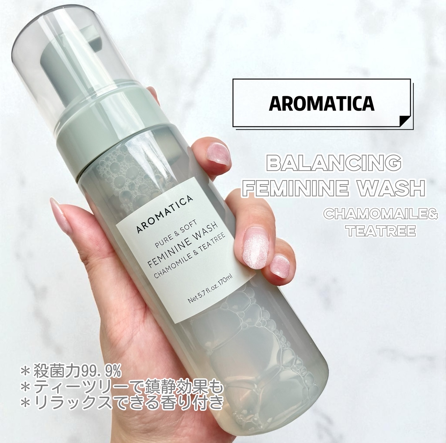AROMATICA✔︎フェミニンウォッシュピュア&ソフト✔︎フェミニンウォッシュカモミール&ティーツリーお洒落な見た目でバスルームに置いても気分が上がるフェミニンウォッシュ🌿ワンプッシュでふわふわの泡が出てくるから、デリケートゾーンケア...