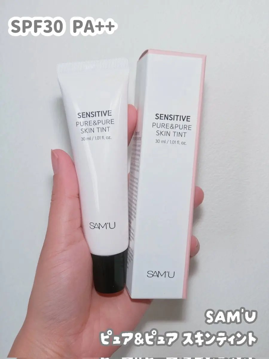 SAM'U【サミュ】ピュアアンドピュアスキンティント30mLSPF30PA++SAM'Uアンバサダー投稿です🗣️ピュアアンドピュアスキンティントのPOINT✨スキンケア成分が80%配合されクリームのような柔らかい塗り心地で白浮きせず透明感ある...