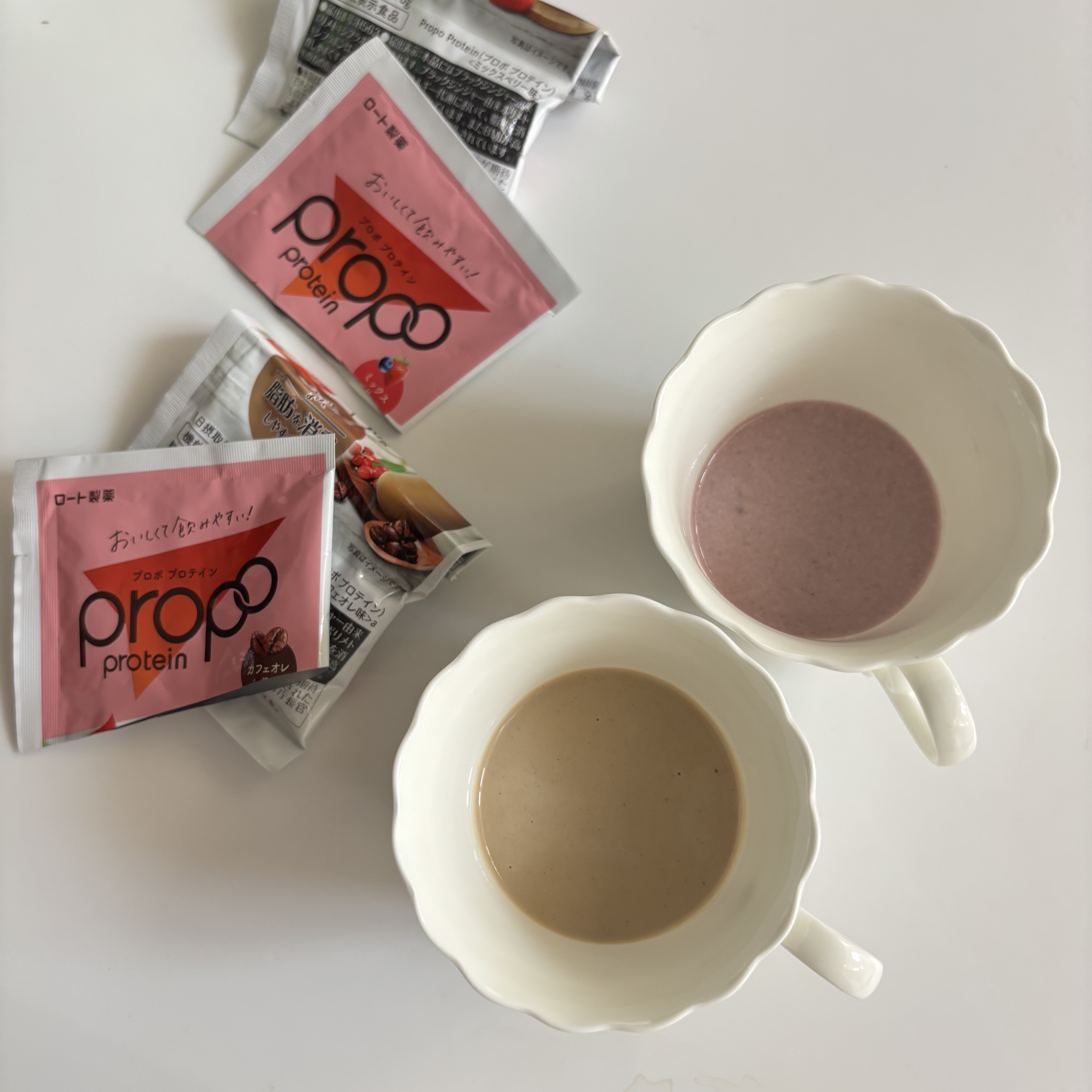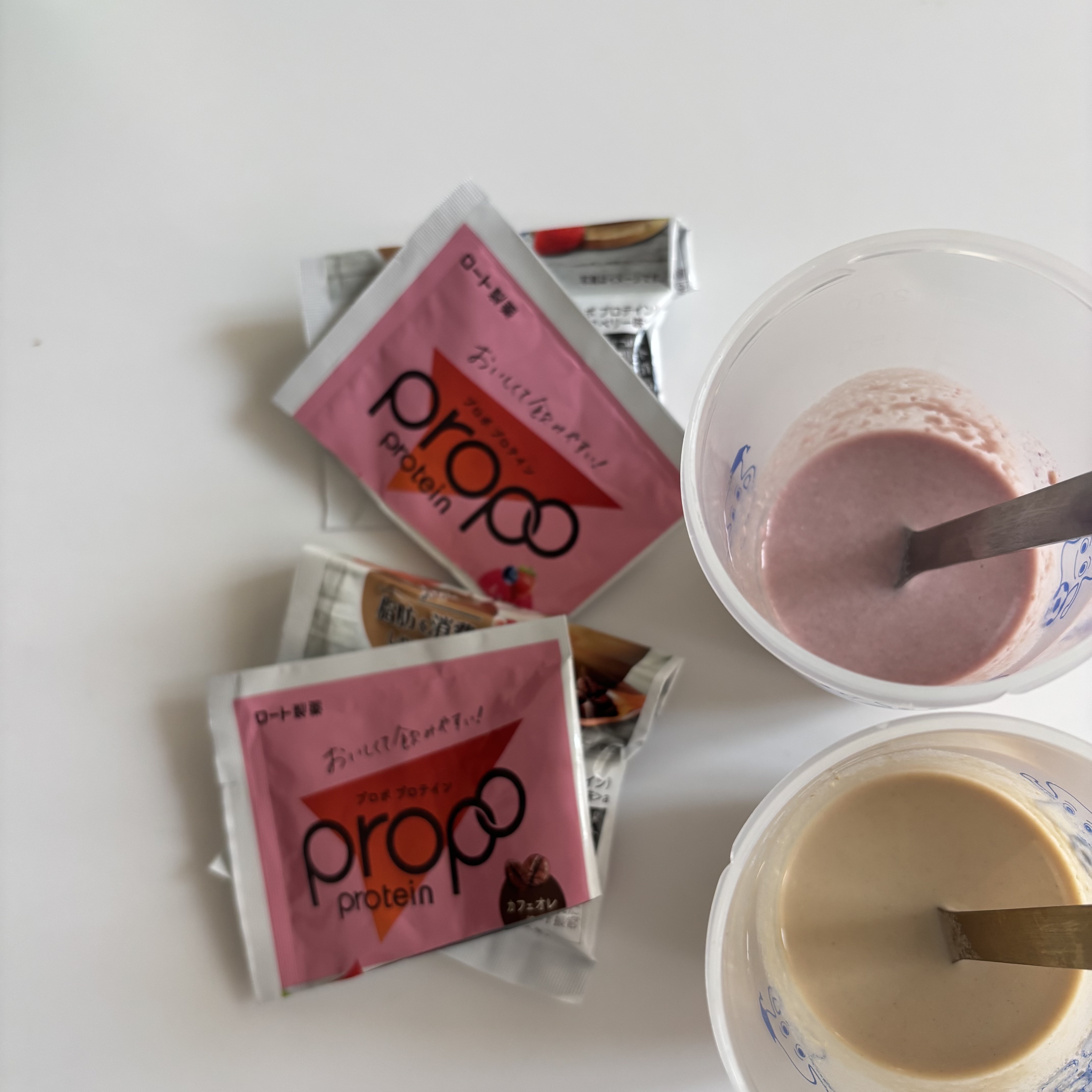 ロート製薬(@propo_official)より〜🔶プロポプロテインシリーズ🔶★RSP機能性表示食品個包装 16gおためし 1回分 ミックスベリー味とカフェオレ味を試しました!無理なくメリハリのある理想の身体づくりを目指す女性を応援、Prop...