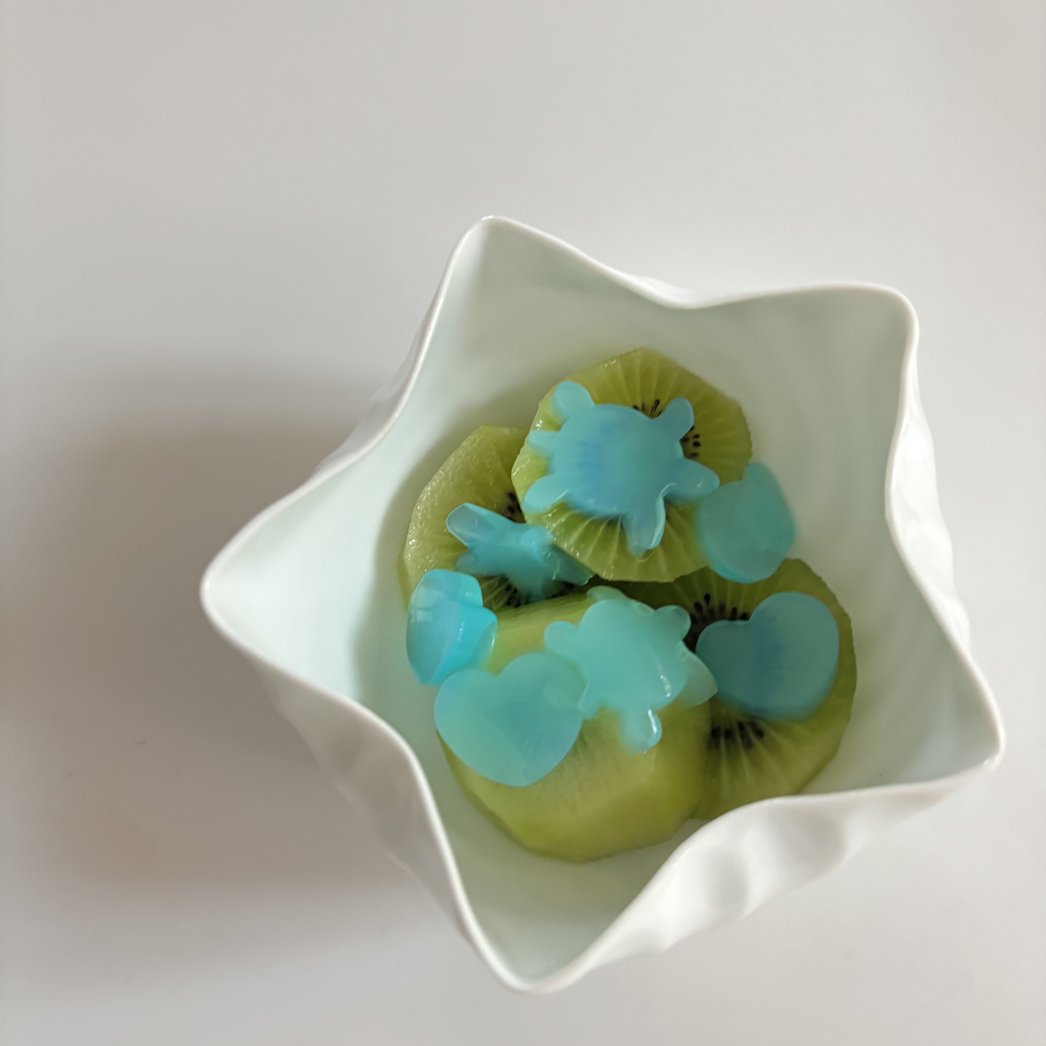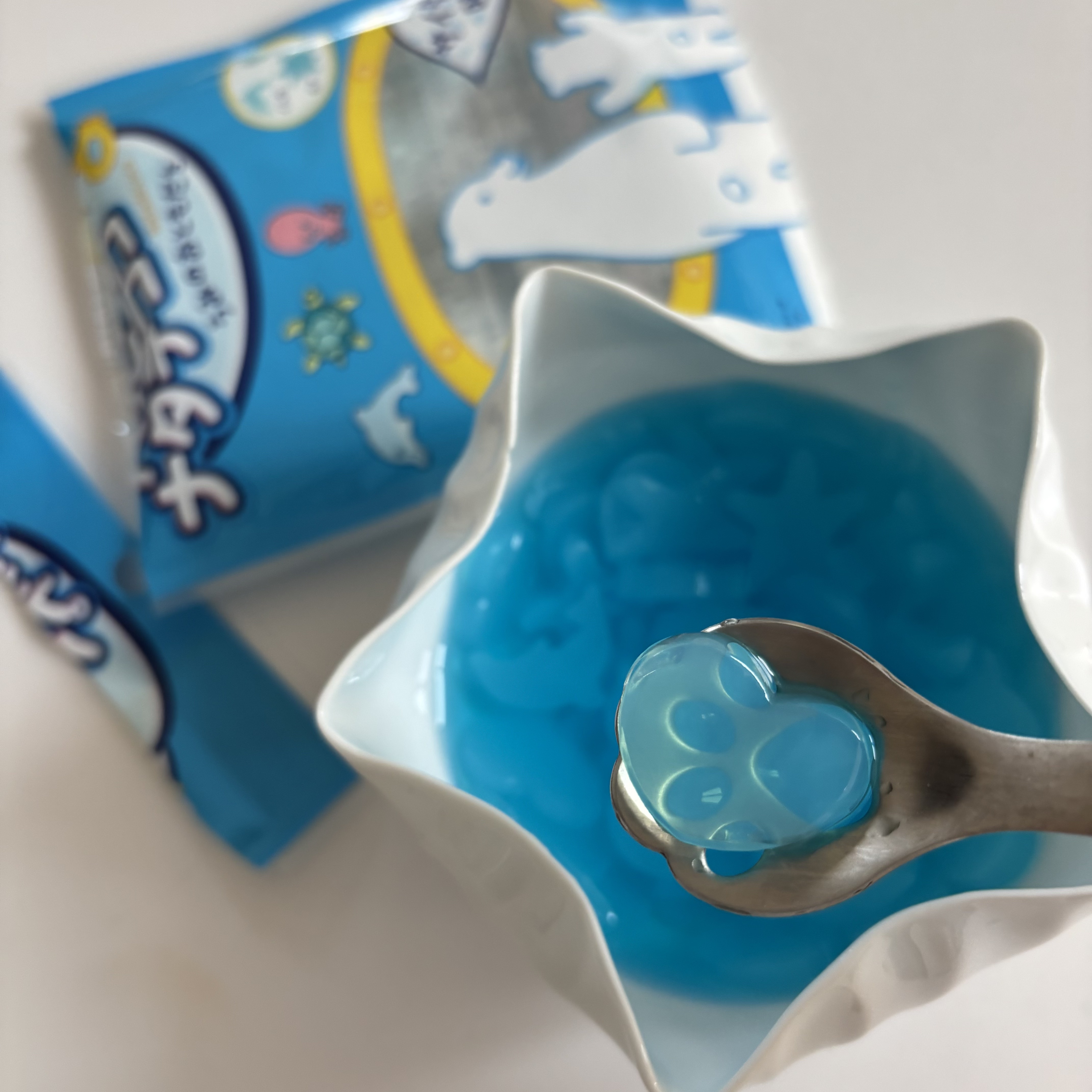 「ハッピーナタデココ~うみのおともだち~」を食べてみました!ナタデココのコリコリ食感とフルーティーなシロップが爽やかで、おやつや食後のデザートにぴったり。ヨーグルトにかけたり、凍らせて食べるのもおすすめ。海の仲間たちのデザインが子どもも大喜び...