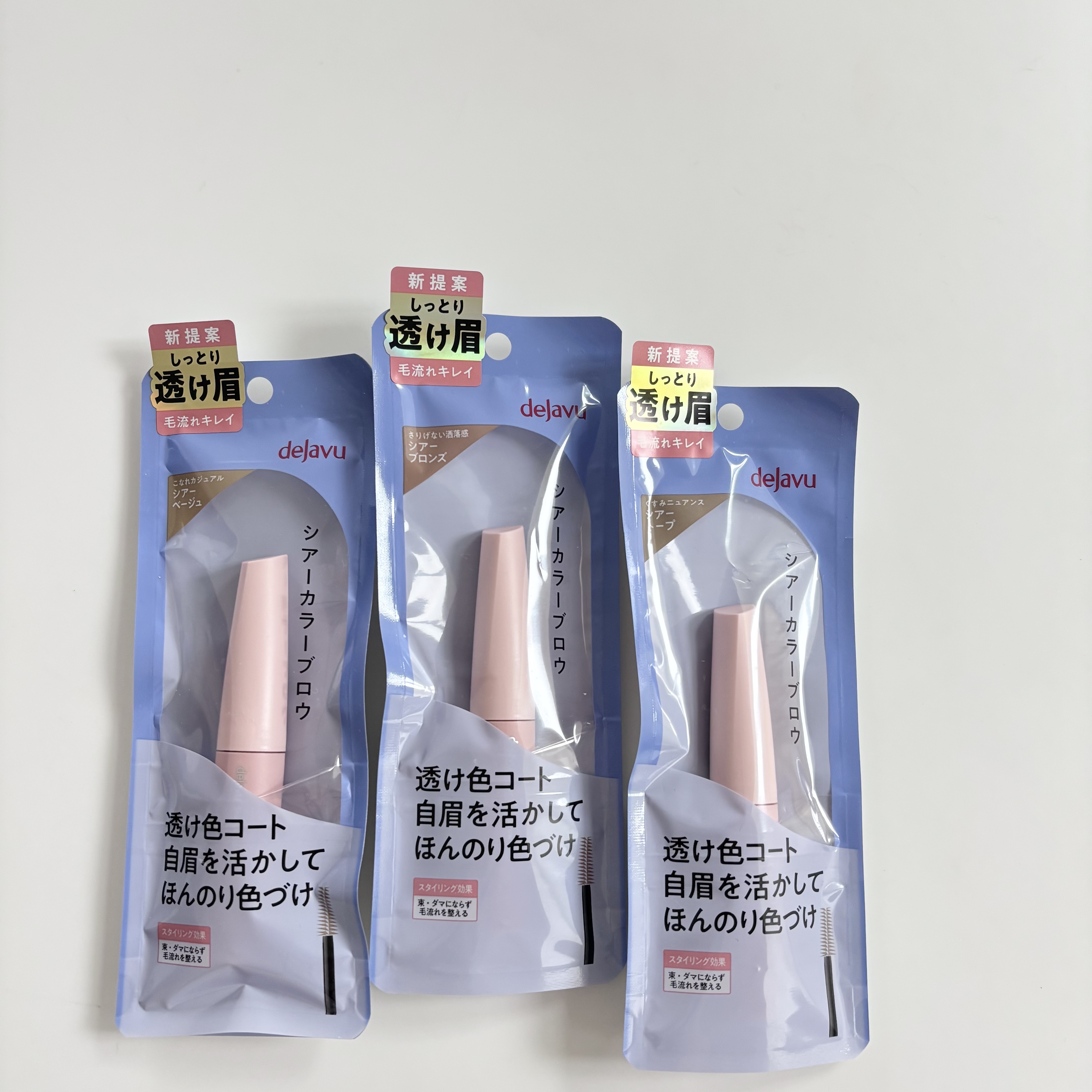 デジャヴュ様からいただきました✨️新作の【シアーカラーブロウ】🪞自眉を活かしつつシアーに色づくから、簡単に抜け感眉の完成💖小回りのきくブラシで毛流れも思い通り👌フィルムタイプだから汗・皮脂に強いのに、お湯オフできるのも嬉しい◎🥹✨カラーはシア...