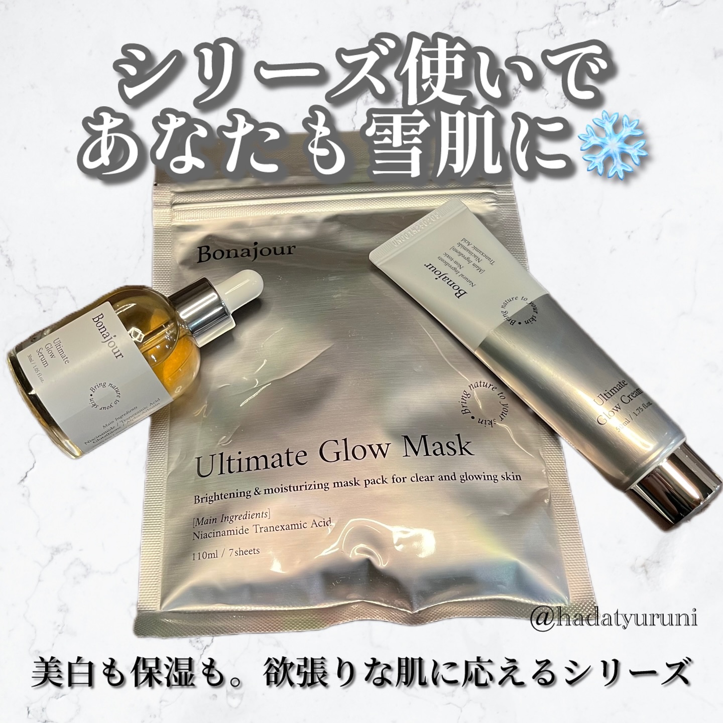 «𝘗𝘙»透明感がほしい時の心強い味方🤍𝘽𝙤𝙣𝙖𝙟𝙤𝙪𝙧𝙐𝙡𝙩𝙞𝙢𝙖𝙩𝙚𝙂𝙡𝙤𝙬を使ってみたよ🕊𓂃𓈒𓏸𓇬𓂂𓈒𝙐𝙡𝙩𝙞𝙢𝙖𝙩𝙚𝙂𝙡𝙤𝙬𝙎𝙚𝙧𝙪𝙢𓂂𓇬さらっとした使用感なのにちゃんと頼もしさがあって次に使うアイテムの入りが良い気がする…💛朝ケアにも...