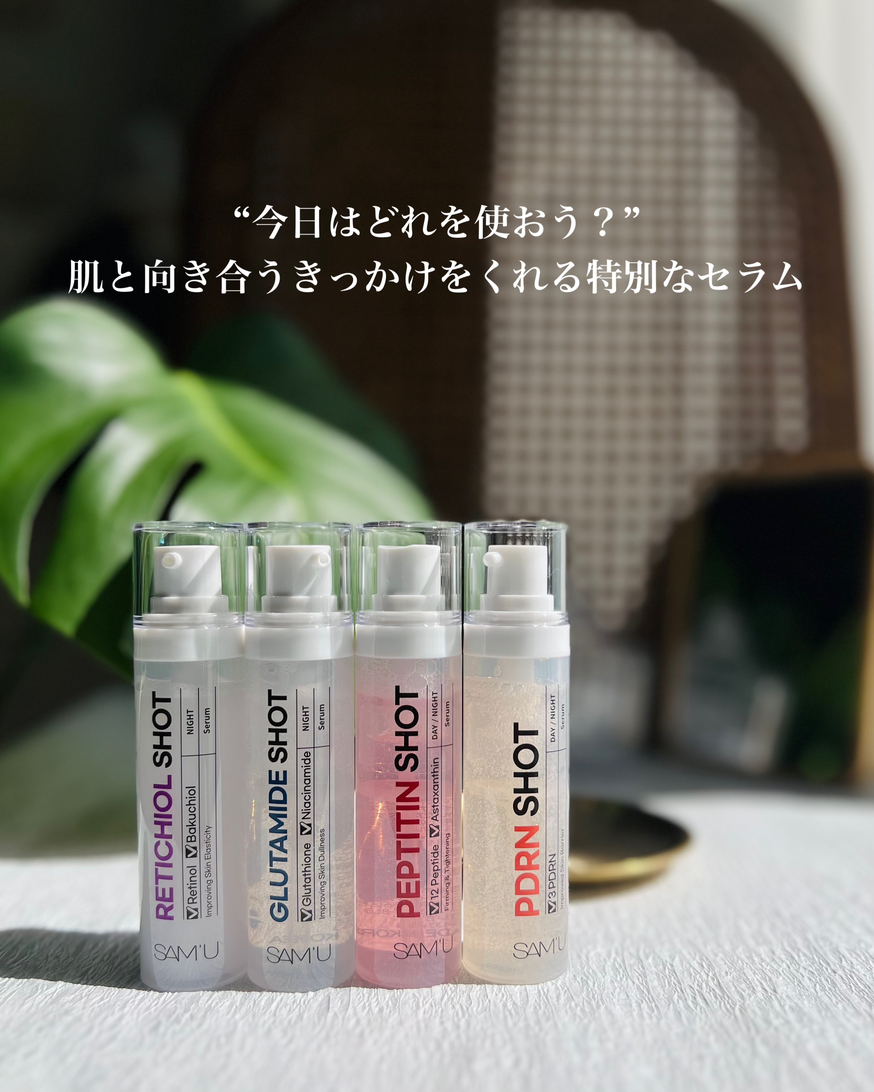 二層式で叶えるワンランク上のスキンケア♡肌悩みに合わせて選べる4つの機能性!▶︎肌バリアケア▶︎ハリ集中ケア▶︎しわケア(乾燥による)▶︎くすみケア今の自分に必要な一滴は??SAM'Uシナジーショット〈ゆらぎやすい肌にはこれ!〉🧡PDRNショ...