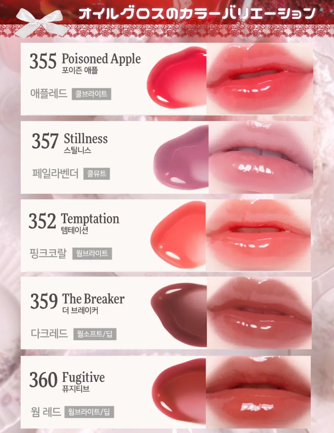 | 口紅・グロス・リップライナーランキング第10位 | ツヤツヤな飴玉みたいな質感。 糸引くテクスチャーで唇にピタッと密着! | 詳細を見る | |