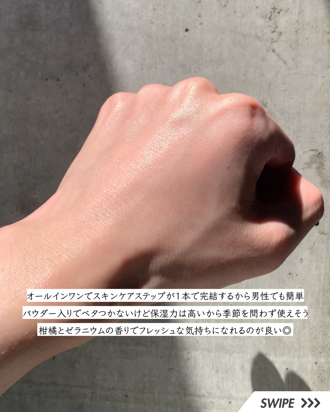 - “皮脂ケア×美容成分”の2層処方でサラサラとうるおいを両立 皮脂ケアと保湿ケアを同時に叶える2層処方を採用。肌をサラサラに整えながらうるおいを与え、テカリや乾燥トラブルの気にならない清潔感のある肌印象へ導きます。皮脂ケア層に配合したテカリ防止パウダー※3が、テカリやべたつきの原因となる余分な皮脂を吸着し、サラサラ肌をキープします。また、美容成分を含む層には、浸透※4型・持続型・安定型など、機能の異なる9種のビタミンC誘導体※5やグリシルグリシン※6などを配合し、キメ・毛穴※7・くすみ※8など、さまざまな肌悩みに多角的にアプローチします。 30代から40代男性の肌悩みに寄り添う美容成分を配合 乾燥や髭剃り後の肌を整えるCICA※9や、独自開発のカプセル紫根※10などを配合し、デリケートな男性の肌をケアします。さらに、レチノール※11などの注目成分を配合。ハリや毛穴の目立ちをケアし※12、若々しい印象の肌へと導きます。 ワンステップでスキンケアが完了する時短ケア 1本で4役(化粧水、乳液、美容液、アフターシェーブローション)の機能を持つオールインワンローションのため、朝晩のスキンケアがひとつで完了します。 ※2 TPCマーケティングリサーチ調べ(2025年4月時点) ※3 タクリル酸メチルクロスポリマー(吸着剤)、酸化亜鉛(収れん剤、吸着剤) ※4 角質層まで ※5 パルミチン酸アスコルビルリン酸3Na、アスコルビルグルコシド、アスコルビルリン酸Na、ビスグリセリルアスコルビン酸、3-グリセリルアスコルビン酸、ヘキシル3-グリセリルアスコルビン酸、ミリスチル3-グリセリルアスコルビン酸、3-O-エチルアスコルビン酸、グリセリルアスコルビン酸(保湿・湿潤剤) ※6 保湿・湿潤剤 ※7 乾燥による毛穴の目立ち ※8 乾燥による ※9 ツボクサ葉エキス ※10 水添レシチン、フィトステロールズ、スクワラン ※11 パルミチン酸レチノール ※12 潤いを与えることによる
