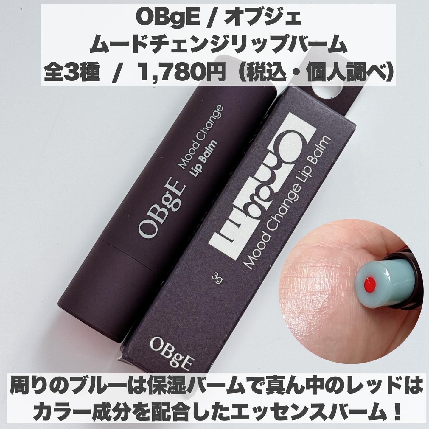 ・・/*ムードチェンジリップバーム3g*ナチュラルカバーローション50ml⇩Instagram@obge_jp\・・【ムードチェンジリップバーム3g】¥1,780(税込)⇩男女問わず使用可能な自然な色づきのリップバーム唇に塗ると、肌トーンに合...