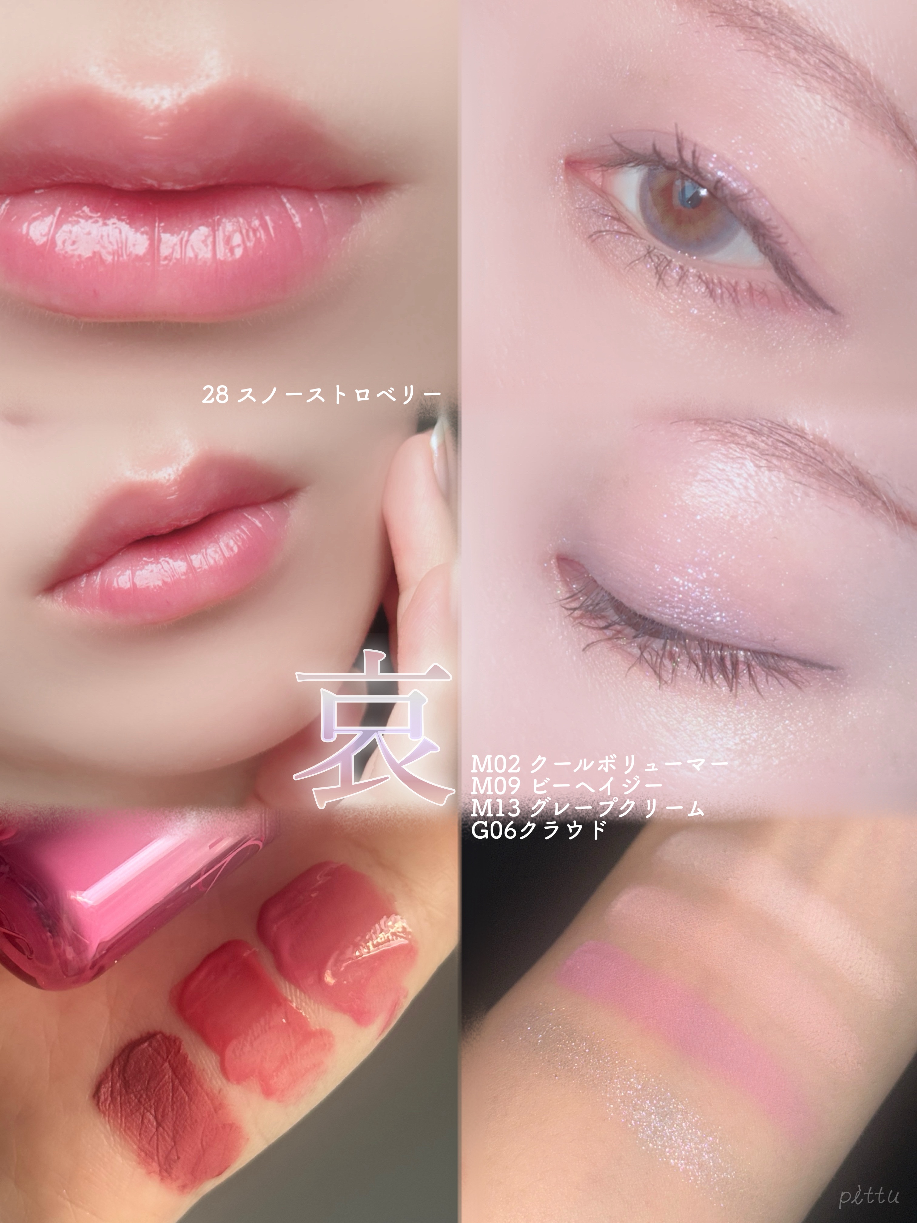KATEの上半期ベスコスにも選ばれるくらい人気のポッピングシルエットシャドウの限定新色ウォームベリーポップ🫐🍓🫖 ミュートマット×クリアグリッターの淡く近しい発色と質感の差でクリッと丸く浮き出るような立体的な目もと印象へメイクするアイシャドウ。 肌馴染みの良い淡めピンク系のカラーにピンクシルバーイエロー等の多色ラメ✨ 今話題の盛り耐性無しメイクにも使いやすいふんわり発色が可愛かったです👏🏻