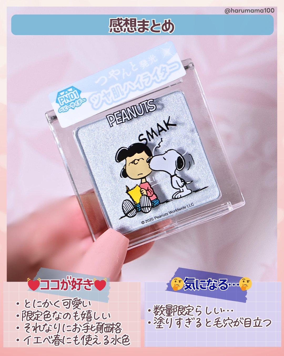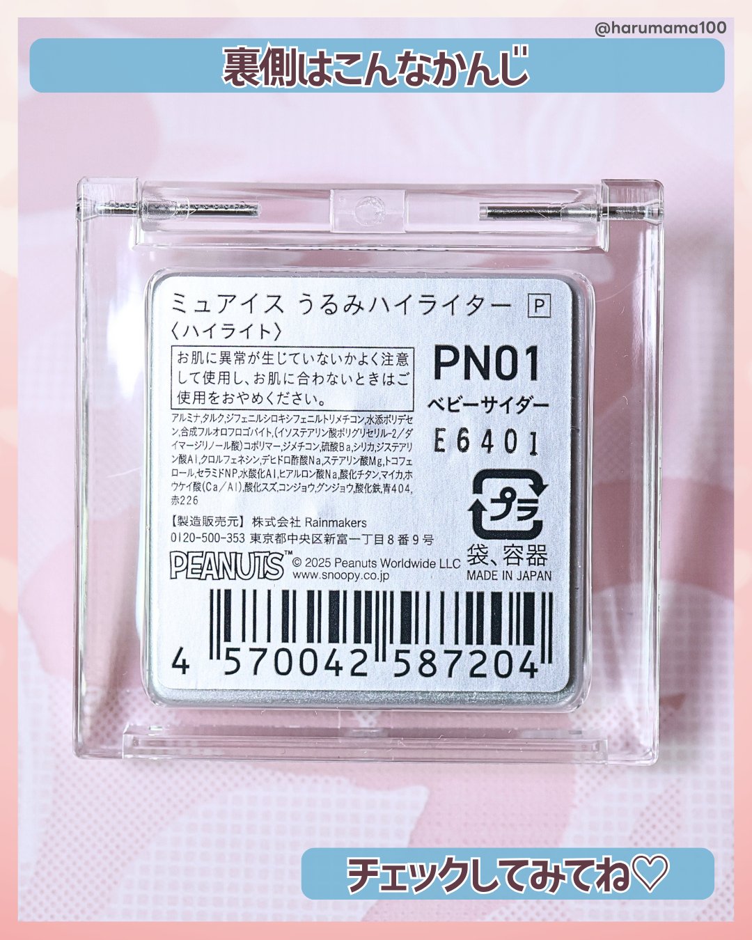 muiceうるみハイライターPN01ベビーサイダー¥968ミュアイスとPEANUTSコラボ!激カワスヌーピー好きだから嬉しい(#^.^#)少し青がかった白み強めなハイライトハイライト好きなみきぽんが作ったなだけあってすごい綺麗に光ってくれる♥...