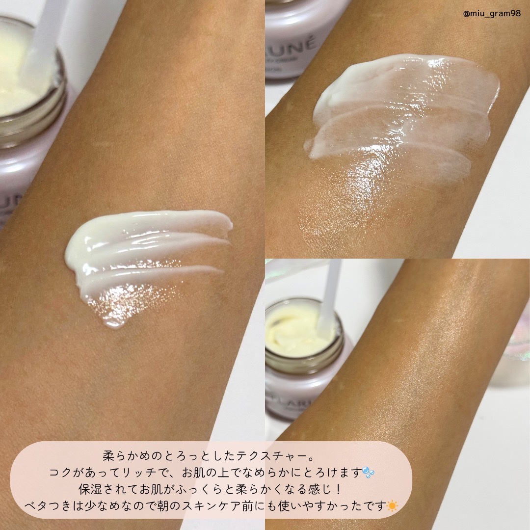| テクスチャーはとろみのあるリッチなクリームで、肌にのせるととろけるように広がります。 | 詳細を見る | ||