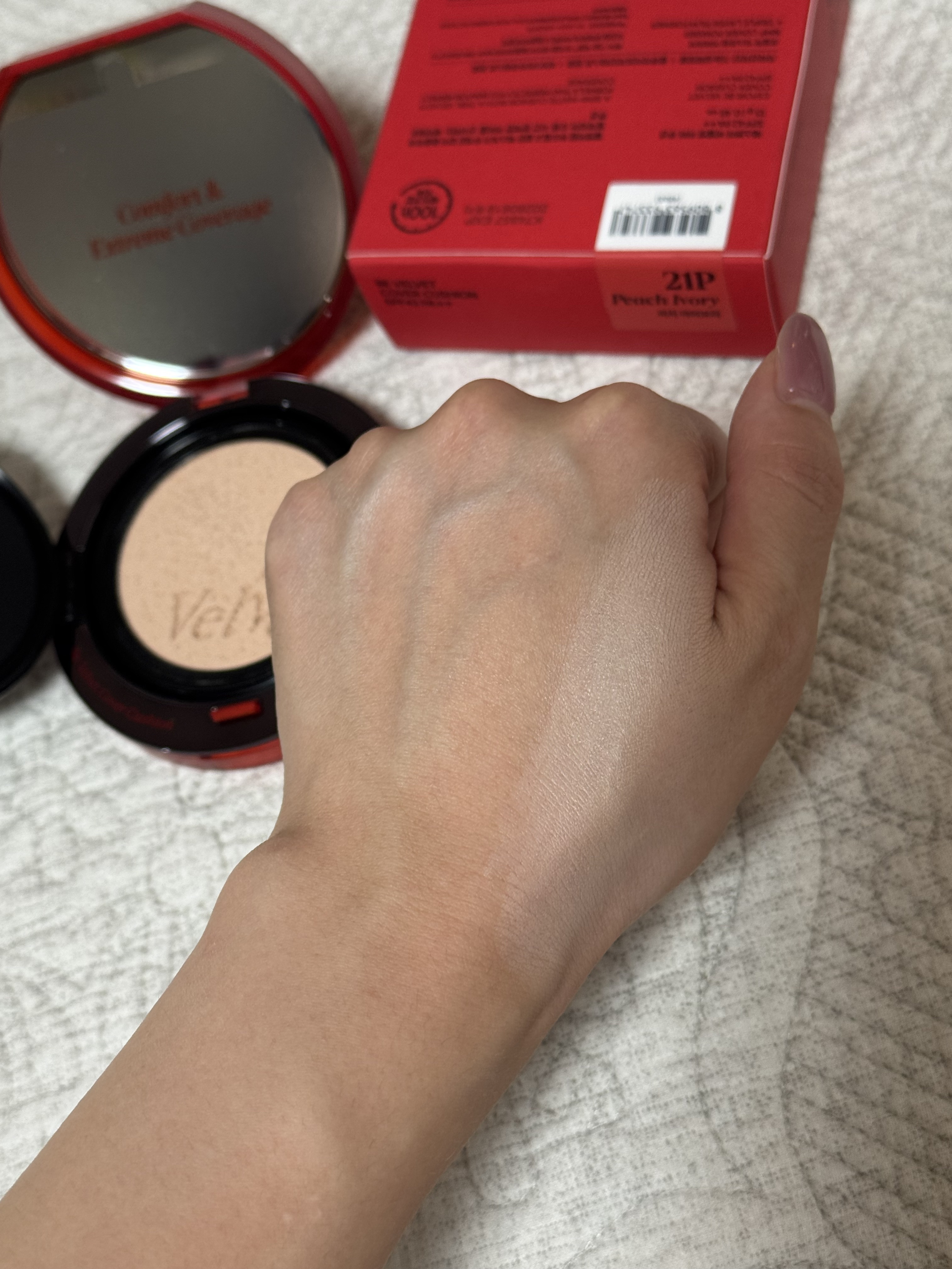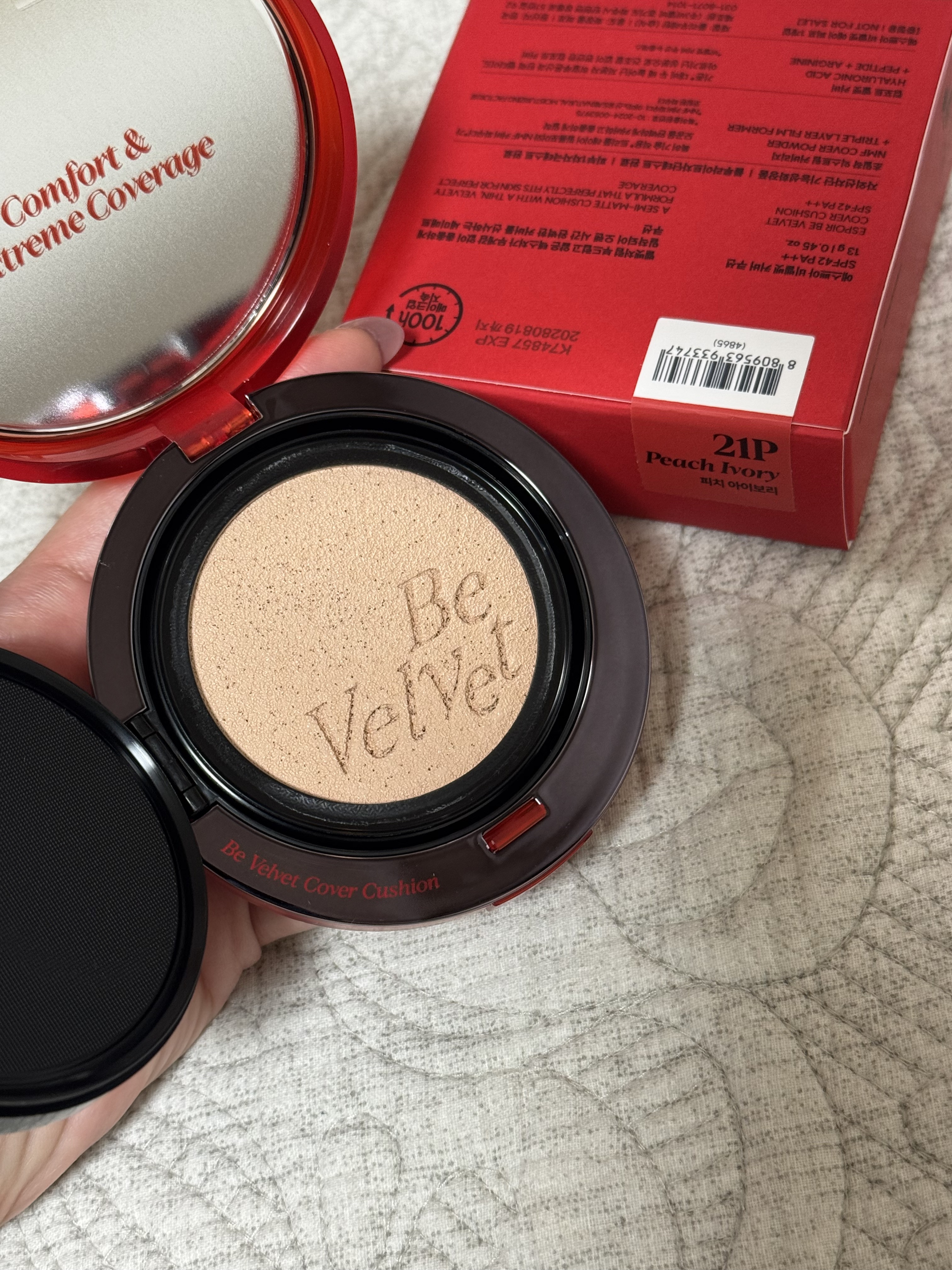 - リニューアル発売 ① 100時間崩れず持続する超密着エクストリームカバー アモーレパシフィックの特許技術*を適用したトリプルレイヤーフィルムフォーマーがメイクを完璧にロック。 NMFカバーパウダー*が隙間なく欠点を均一かつ完璧にカバーし、100時間持続メイクを実現するエクストリームカバークッション * 特許出願番号 : 10-2024-0053975 *アミノ酸誘導体 (NATURAL MOISTURIZING FACTOR)でコーティングしたカバーパウダー ② 不快感のない超軽量テクスチャー &きれいなカラーが続きダークニングの心配ZERO 従来*に比べて40%軽くなったパウダーが、極限まで薄く不快感を感じずにカバーするテクスチャーを実現 オイルによるカラーの影響を最小限に抑え、ダークニングの心配なく長持ちするカラーをキープ ③ 乾燥しないコンフォートベルベット 従来*に比べて2倍量配合した低分子ヒアルロン酸で肌の中の水分層を満たし、弾力ペプチドと保湿、バリア強化効能のアルギニンを配合して乾燥感のない快適なコンフォートベルベットテクスチャーを実現 *ビーベルベットカバークッションニュークラス ④ ディテールにこだわったエクストリームクリーン処方 ビーガン認証はもちろん、皮膚刺激テスト、ブルーライトカットテストとファヘFREE(20種類の注意成分)、セフォラクリーン(Phase4)レベルをクリアしたエクストリームクリーン処方