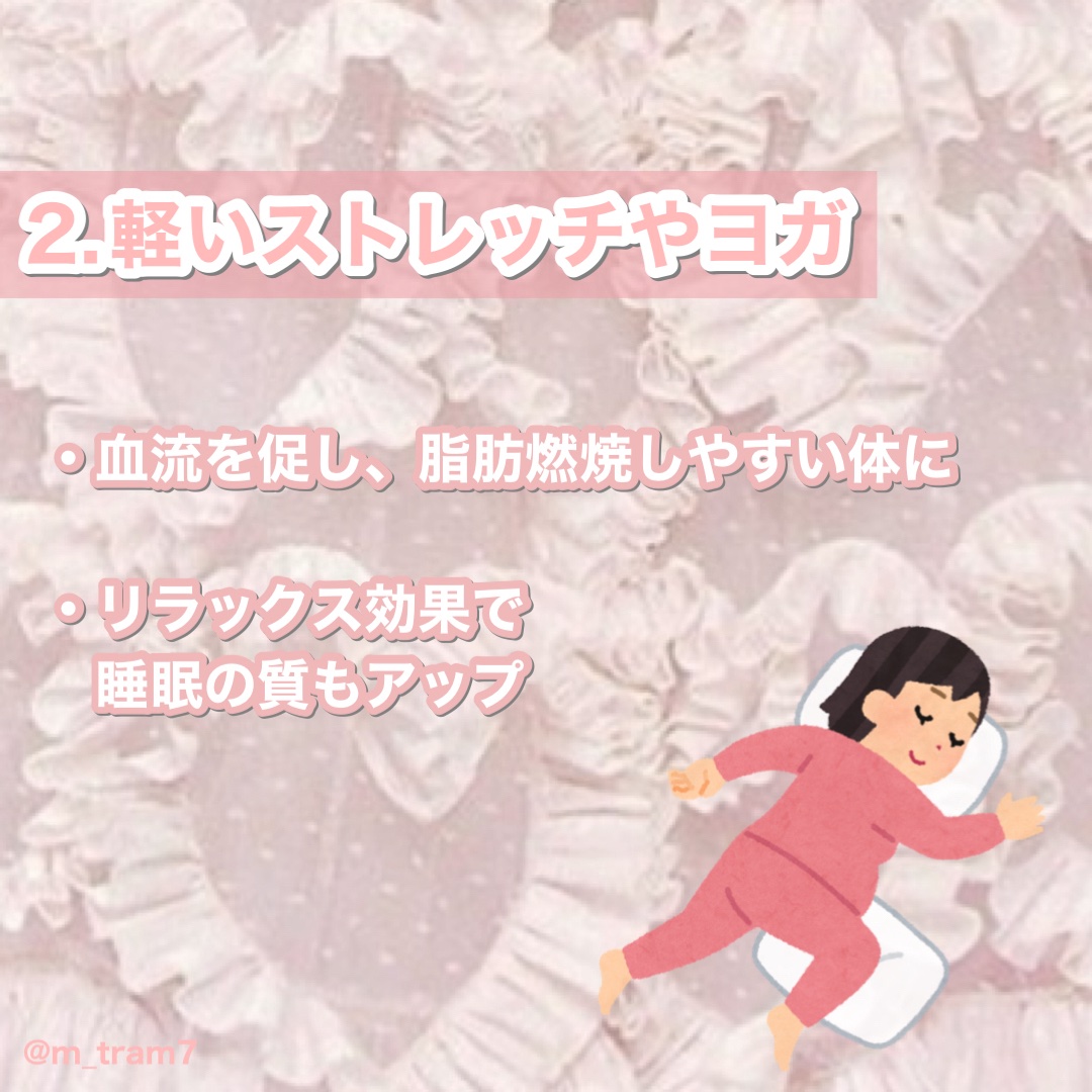 日々の習慣で痩せやすく🕒💪🏻💕朝の5~15分程度で痩せやすい身体を目指す❕自身の生活に合わせてできることから実践📝———————————————🔗痩せやすい体づくり習慣———————————————1.起きたらコップ1杯の常温水•就寝中に失わ...