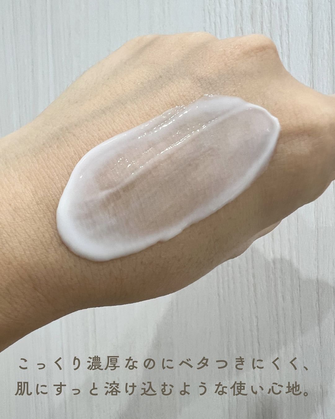 | テクスチャーはとろみのあるリッチなクリームで、肌にのせるととろけるように広がります。 | 詳細を見る | ||