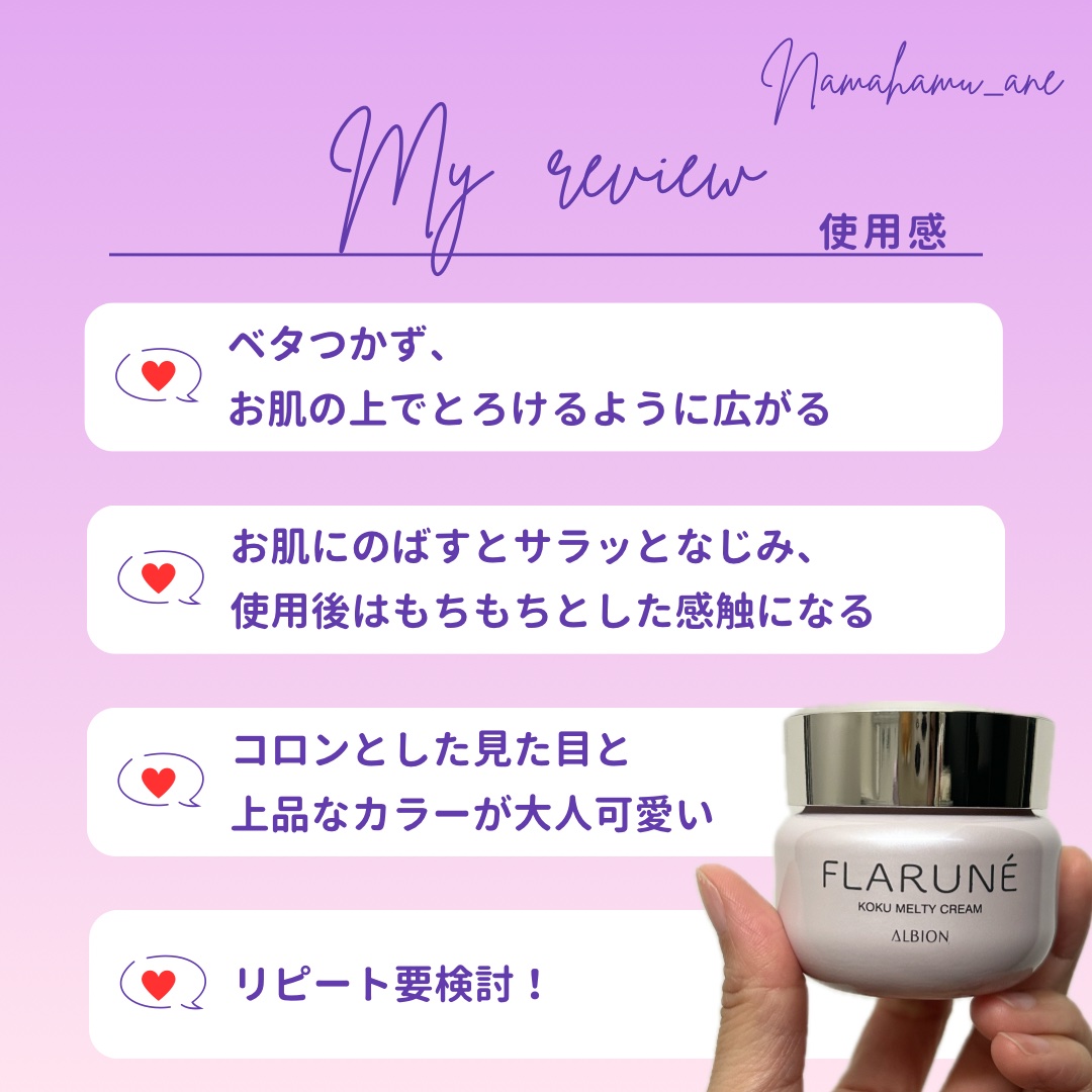 | 名前の通りコクを感じるけど ベタベタはしないクリームで 今の暑い時期でも使いやすい。 | 詳細を見る | ||