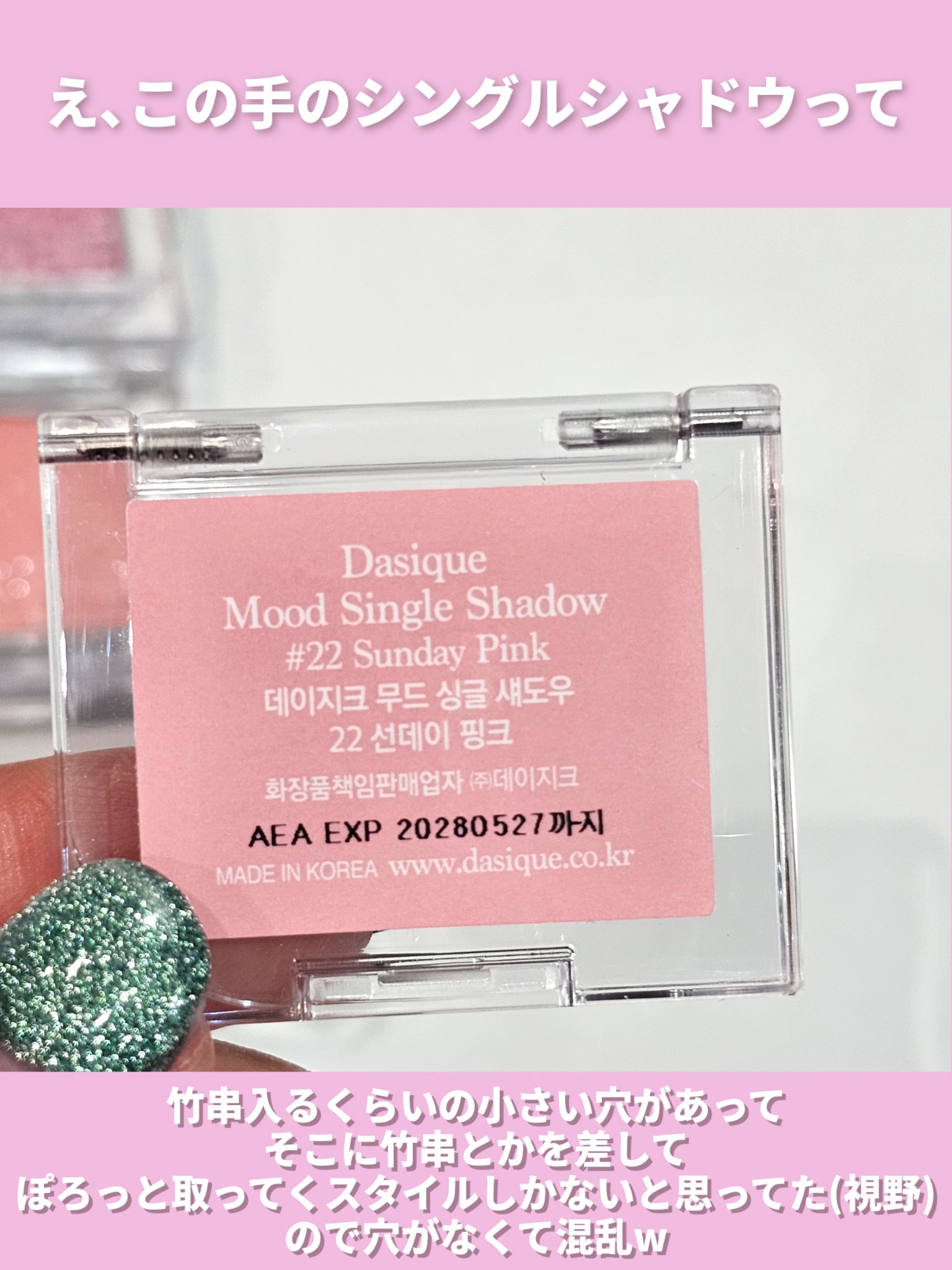 デイジークのムードシングルアイシャドウ✨全部で40種類あるのよ!メガ割の時に買ったんだけどとりあえず絞りに絞って気になるカラー4色だけ買いました☺️私自身、ブルベやイエベなど気にせず自分の使いたいカラーを使う派でして😅ピンク系が好きなのでピン...