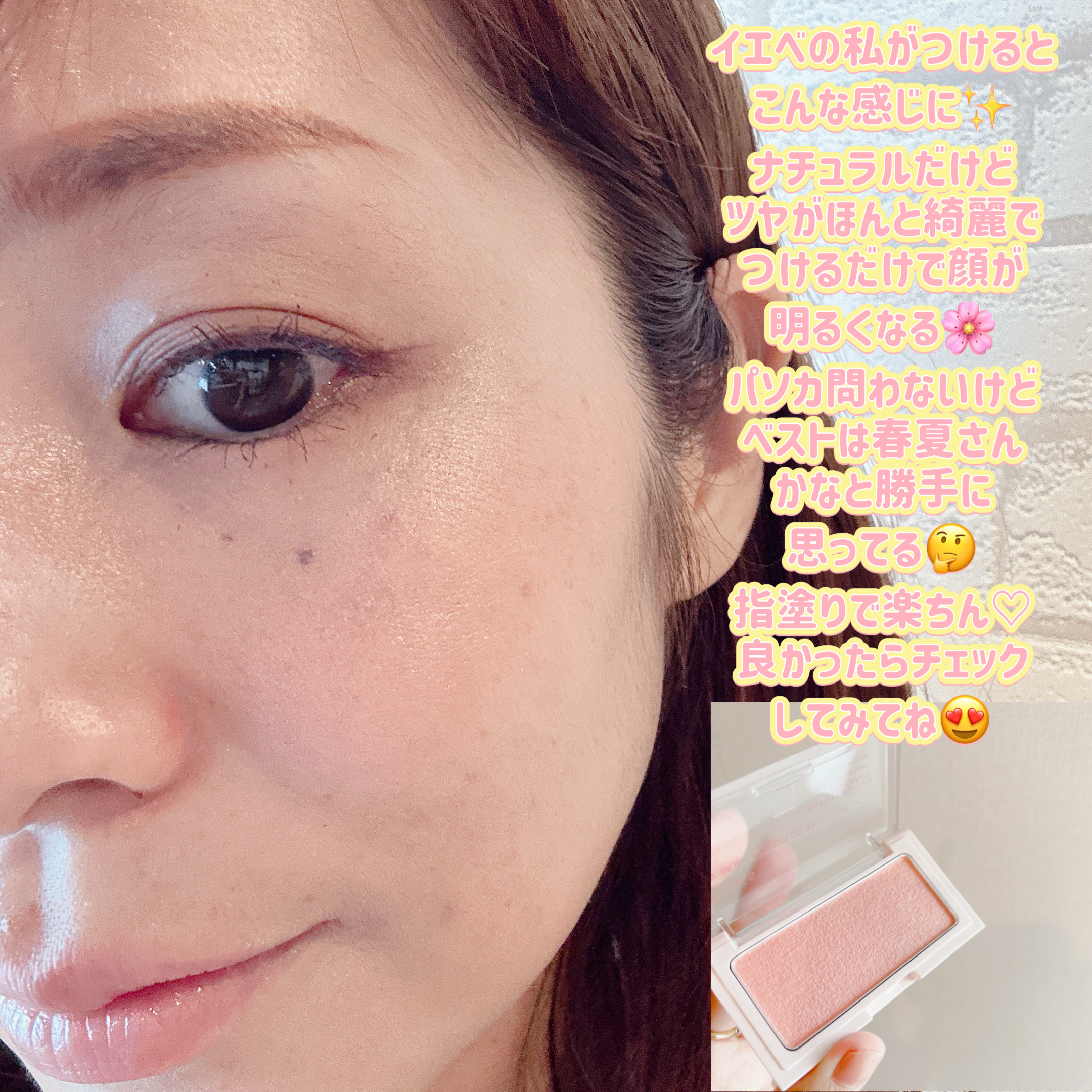 | 薄づきのチークになっています!少しラメ感があり、ツヤが欲しい人にはかなりオススメです。 | 詳細を見る | ||