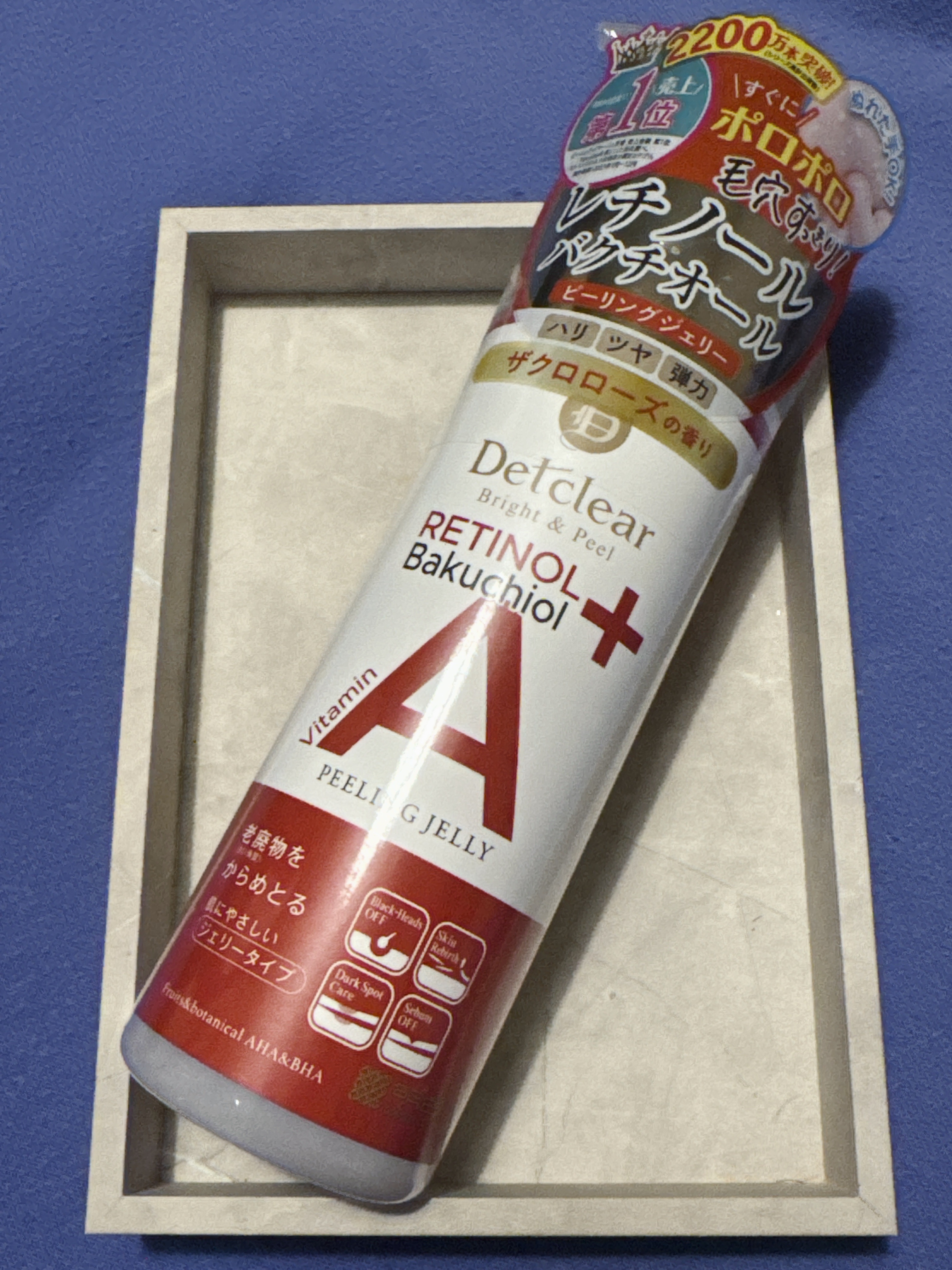 - <DETクリア ブライト&ピール ピーリングジェリー〈エイジングケアタイプ〉> 水、グリセリン、カルボマー、ステアルトリモニウムクロリド、パルミチン酸レチノール、バクチオール、ナイアシンアミド、セラミドNS、セラミドNP、セラミドAP、ザクロ果実エキス、セイヨウナシ果実、パパイン、ユズ果実エキス、リンゴ酸、酒石酸、サリックスニグラ樹皮エキス、ヒアルロン酸Na、水溶性コラーゲン、ローヤルゼリー、ハチミツ、ハチミツエキス、プロポリスエキス、ドクダミエキス、ツボクサ葉エキス、ノイバラ果実エキス、ビワ葉エキス、チャ葉エキス、グリコシルトレハロース、加水分解水添デンプン、BG、シクロデキストリン、ダイズステロール、コーンスターチ、ヤシ油アルキルグルコシド、水添レシチン、PEG/PPG-5/30コポリマー、スクロース、コーン油、パーム油、トコフェロール、フェノキシエタノール、香料