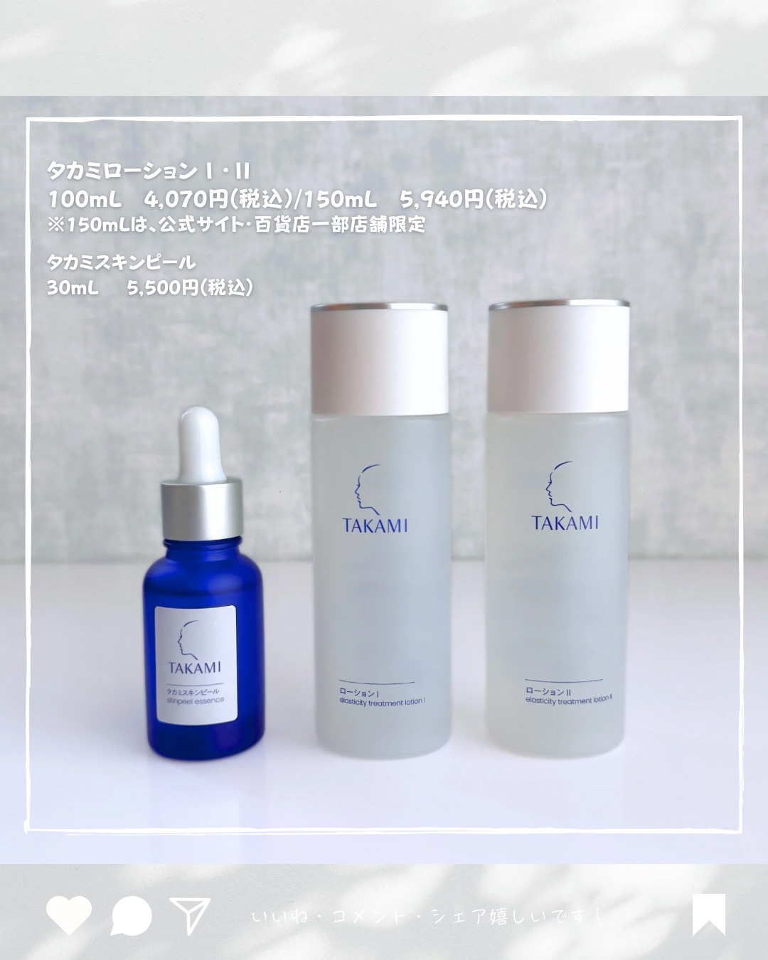 あの!タカミから化粧水出ました!!!そうあの有名な「タカミスキンピール」のタカミからです!!「自ら潤いを作る力」に着目◎美容皮膚発想この潤い、肌深く。タカミ“好潤感(こうじゅんかん)”化粧水、誕生!!🫧Ⅰ(みずみずしい感触)シャバシャバとさっ...