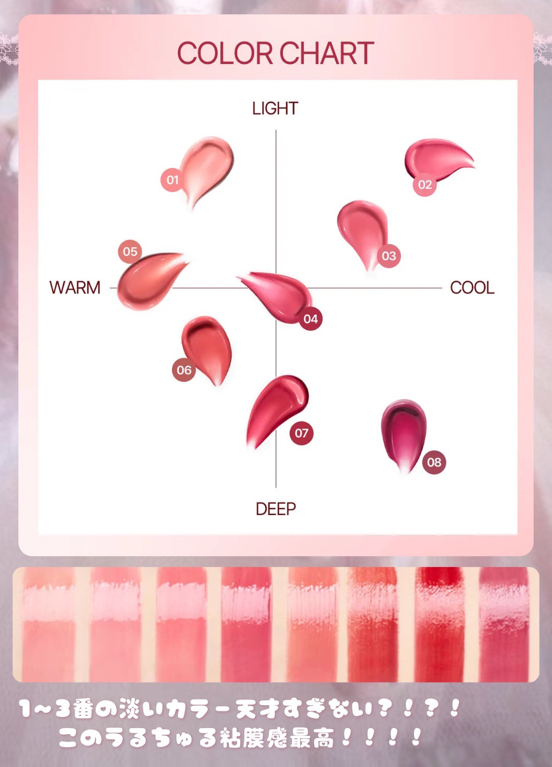 | 溶ける水光テクスチャーでふっくら唇を演出💋 しっとり✨プルっと演出してくれるティント | 詳細を見る | |