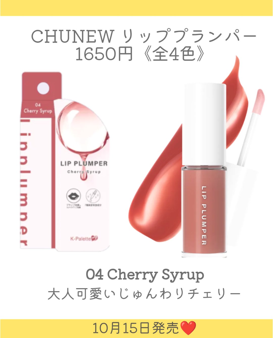 kパレット公式アンバサダーとしての投稿です🌟可愛すぎる新作リッププランパーが登場💖K-パレットCHUNEWリッププランパー4色展開のぷっくりちゅるんが叶うリッププランパー✨️塗りやすいチップブラシ!美容保湿成分配合で唇うるおう⭕️ほんのり色づ...