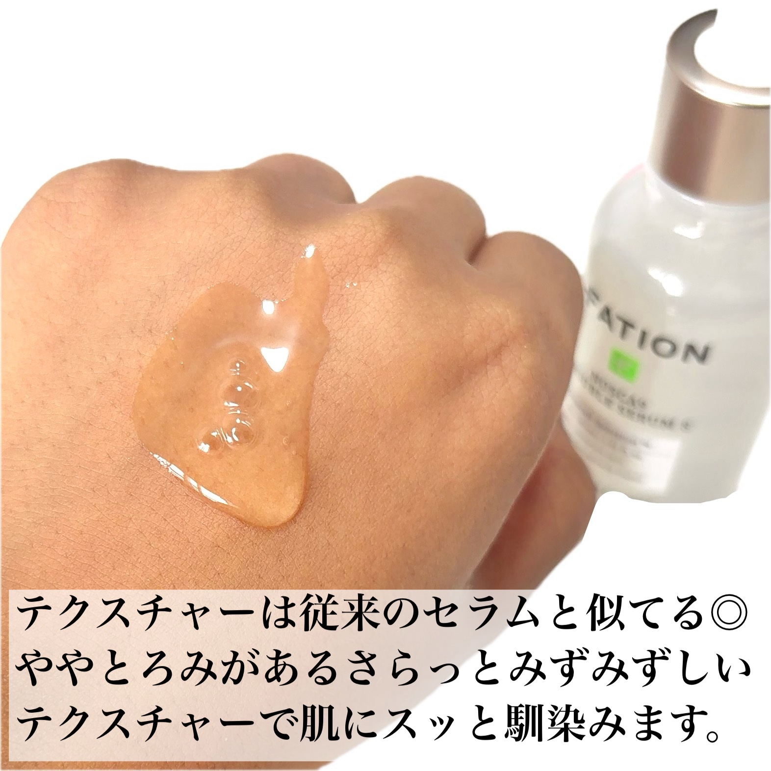 | とろみのあるテクスチャーだけど、肌にのばすとさらっとしていてみずみずしい使用感だよ☺️ | 詳細を見る | ||