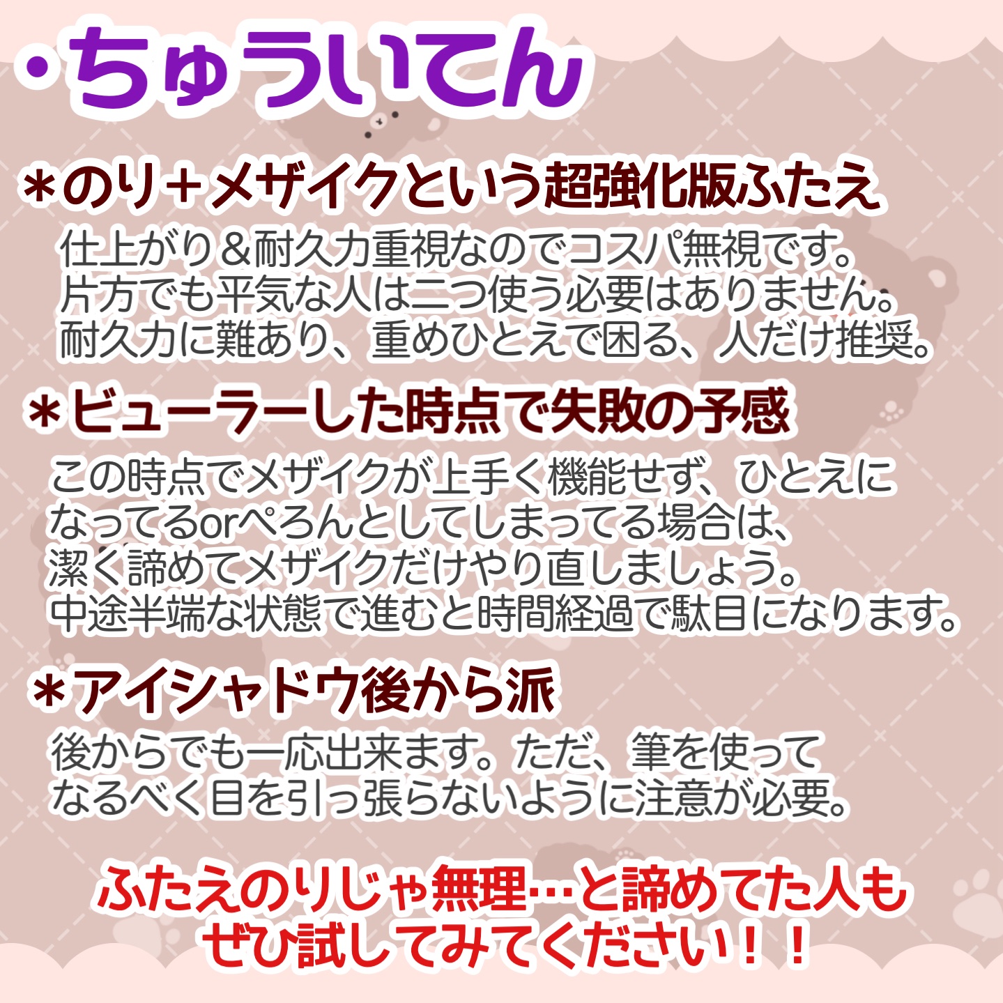 | 美容グッズ・美容家電ランキング第177位 | 跡がつきやすい!埋没式だからテープ付けてます感がない!プッシャーが使いやすい♡ | 詳細を見る | |