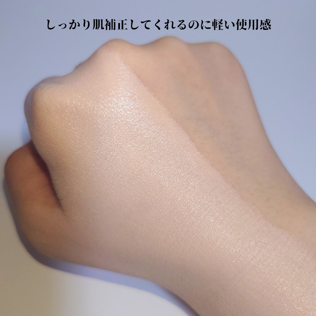 薄膜で、軽い使用感❣️ 塗布してる時はみずみずしいのに 馴染むとピタッと密着するような使用感🫶🏻 4種類の異なるパウダー配合で 薄く均一にカバーしてくれるそう◎ カバー感あるのに、重くないからお気に入り⭐ 汗に強いアクティビティプルーフ🫧 水をしっかり弾くから、今からの時期に良さそうです!! ハートの可愛いパフは使いやすい♡