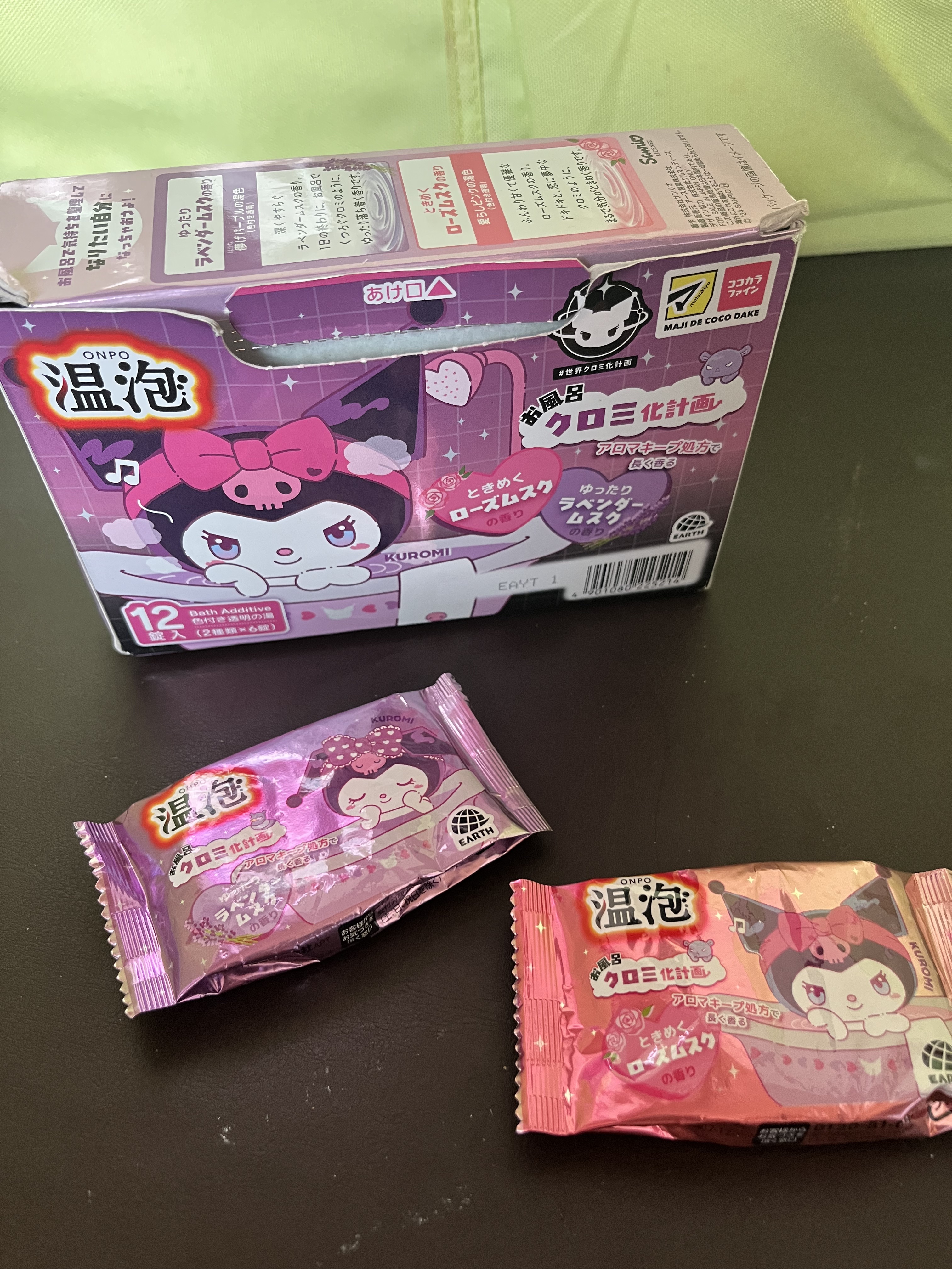 ココカラファインで見つけて見た瞬間買ってしまったクロミ柄の温泡!! 錠剤タイプの入浴剤で温泡には昔からお世話になってる アロマキープ処方で香りを長く持続するんだって!お肌に潤いをもたらす、4種の保湿成分配合 中の錠剤の絵柄も違うくてそこも可愛い点 こんな可愛かったら使いたくなくなるしもったいなく感じるよー😭