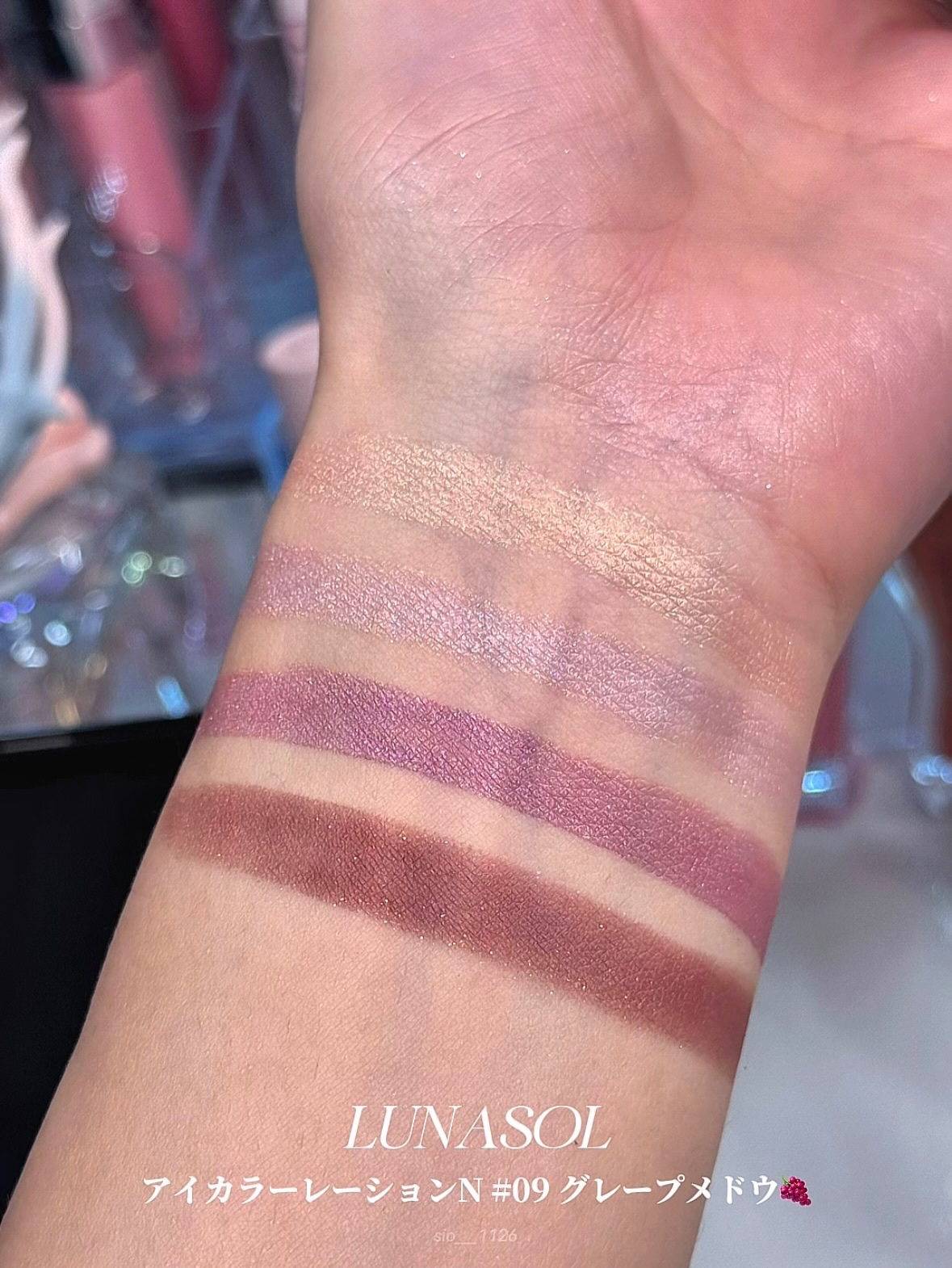 【LUNASOL葡萄色アイシャドウ🍇💜】#lunasolアイカラーレーションN¥7,700(税込)見た目以上に実際の質感はさらにしっとり♡パッケージはゴールドでお洒落✨️買う価値ありまくり❕[09グレープメドウ]この色の組み合わせで定番色なの...